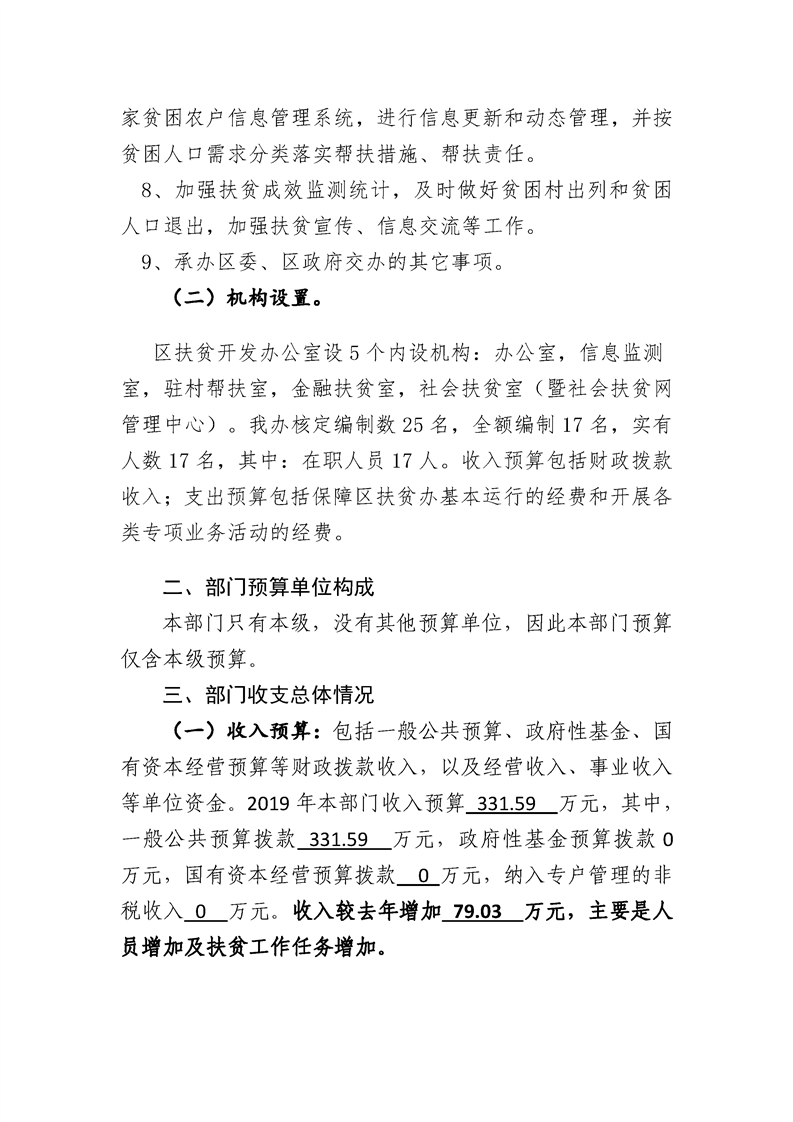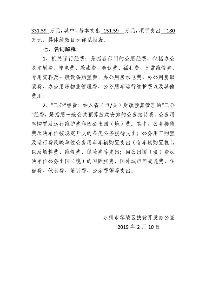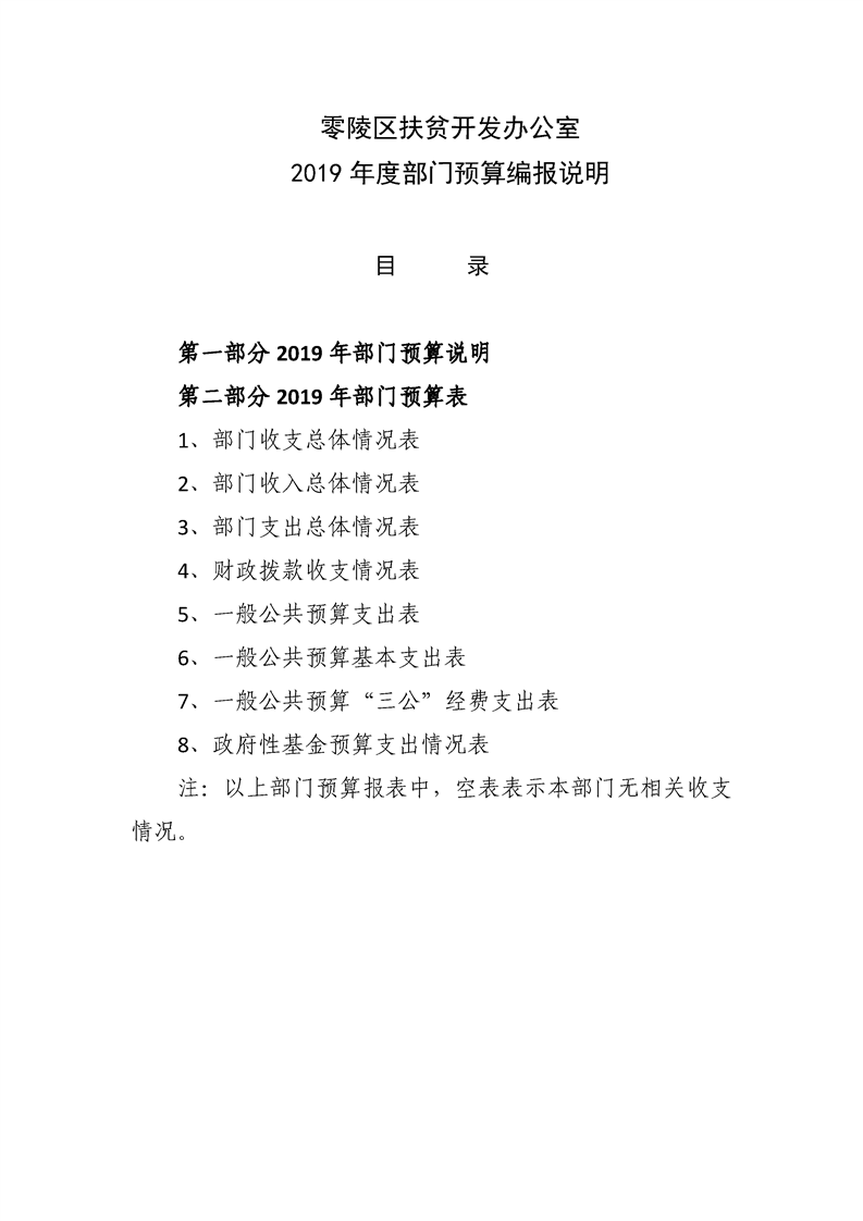 零陵区扶贫开发办公室2019年度部门预算编报说明