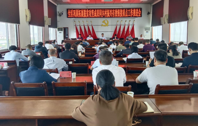10月25日下午,全区巩固拓展脱贫攻坚成果同乡村振兴有效衔接重点工作推进视频会议召开,会议深入学习贯彻党的二十大精神,全面剖析全区巩固拓展脱贫攻坚成果推进乡村振兴面临的形势任务、存在的短板弱项,安排部署当前巩固拓展脱贫攻坚成果同乡村振兴有效衔接问题清零工作,深入推进全区乡村振兴重点工作。区委副书记、统战部长龙军参加会议并讲话,区委常委、副区长欧阳小婷主持。