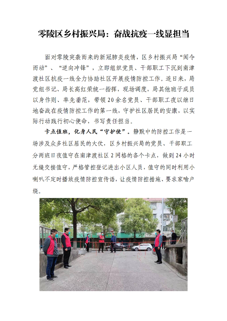 零陵区乡村振兴局:奋战抗疫一线显担当