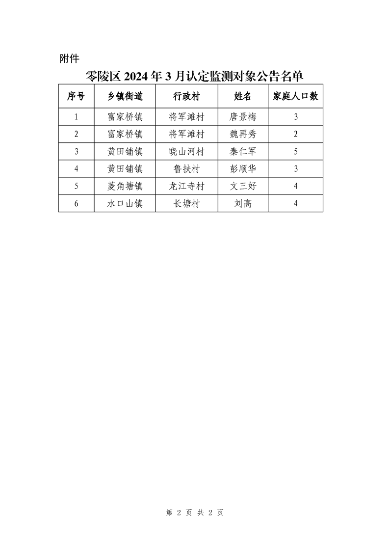 零陵区2024年3月认定新增监测对象名单公告