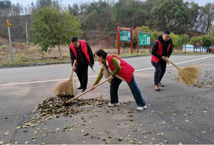 党员们身穿红马甲,手持铁锹、扫帚、夹子等清洁工具清理村内的杂草、路上的落叶及其他垃圾。党员干部切实发挥先锋模范作用和不怕脏不怕累的服务精神,用实际行动为群众办实事办好事,进一步提升了香零山村的“颜值”。同时开展入户宣传,对村民宣传创建文明城市、平安建设等相关政策知识,共发放创建全国文明城市宣传资料200余份,提高了村民们的卫生意识和参与环境卫生清理的自觉意识。