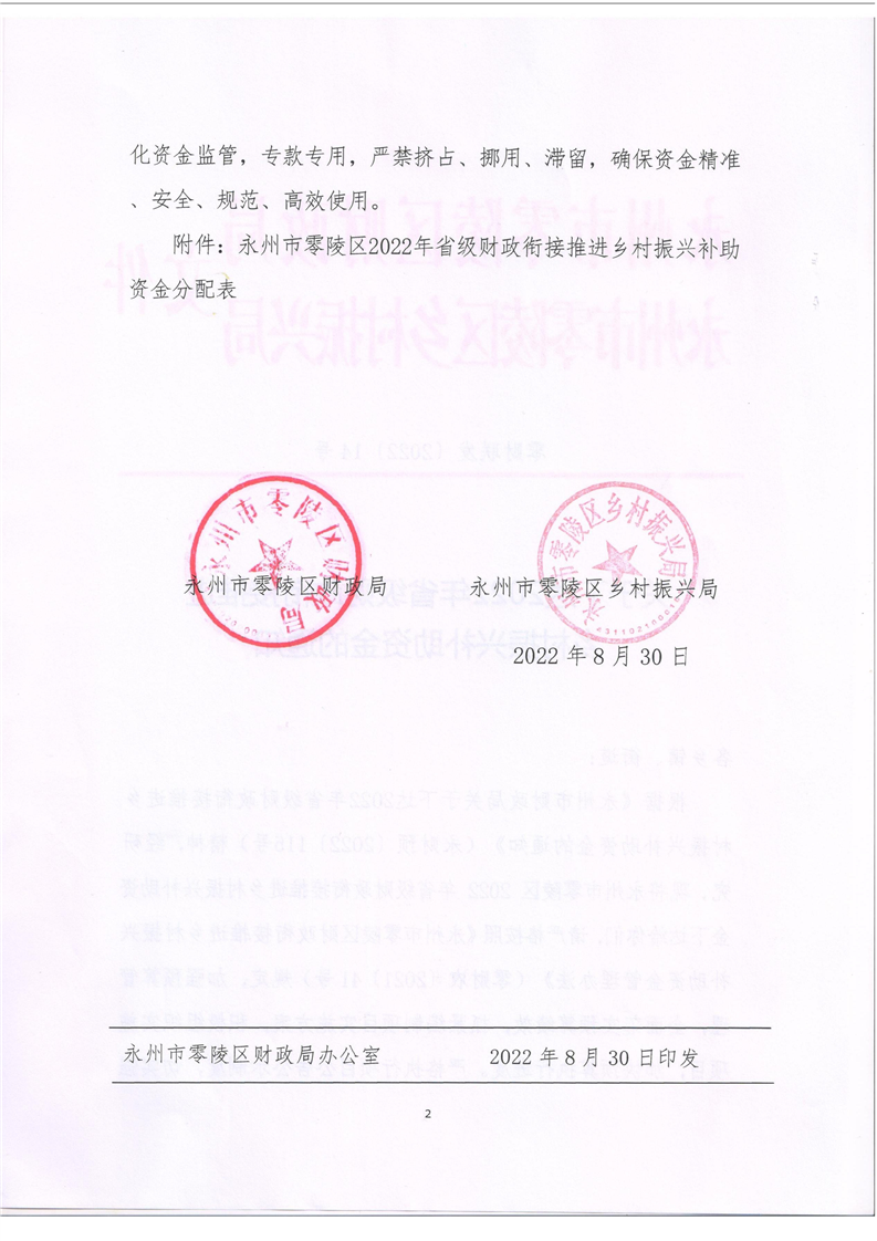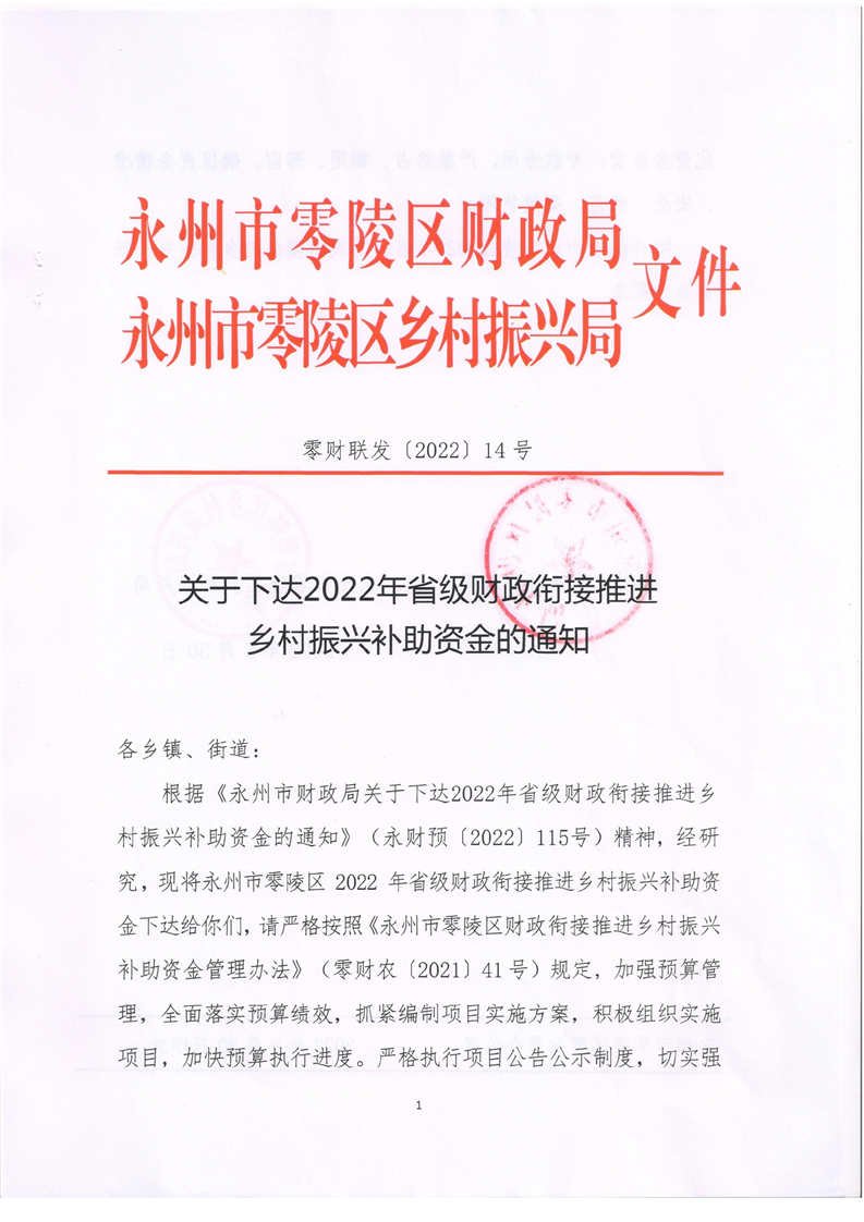 关于下达2022年省级衔接推进乡村振兴补助资金的通知