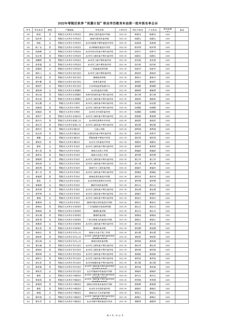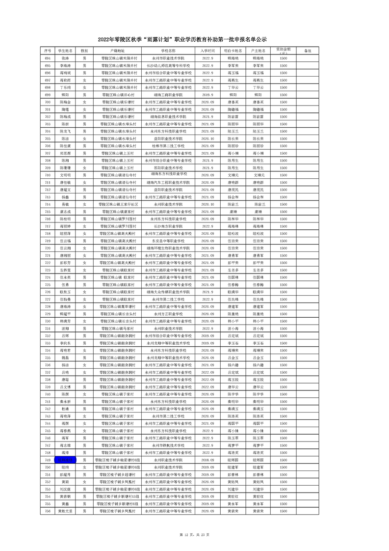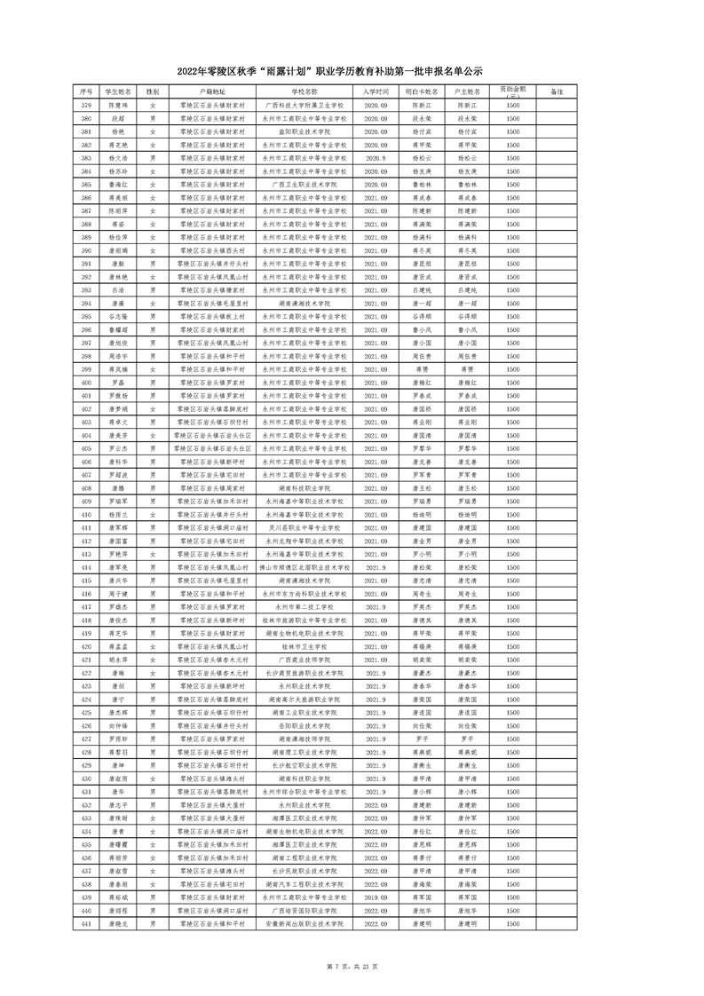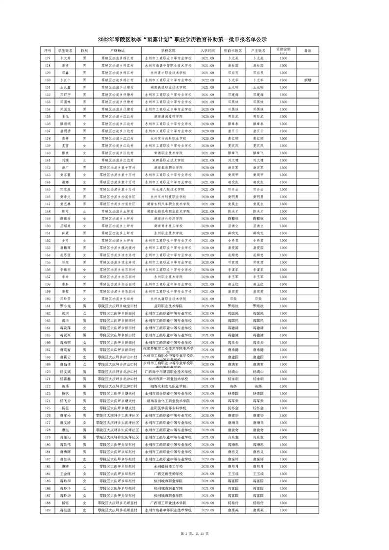 2022年零陵区秋季“雨露计划”职业学历教育补助第一批申报名单公示