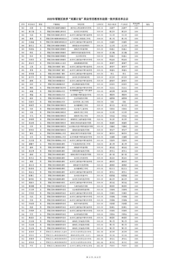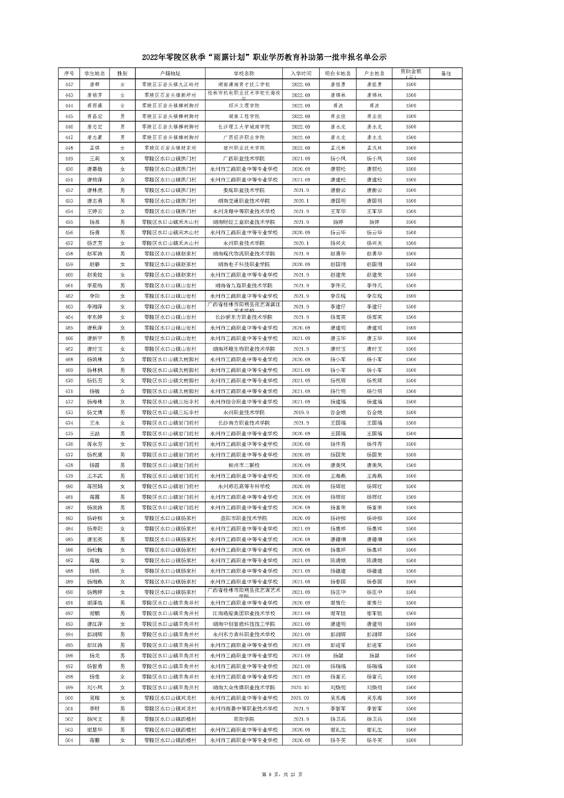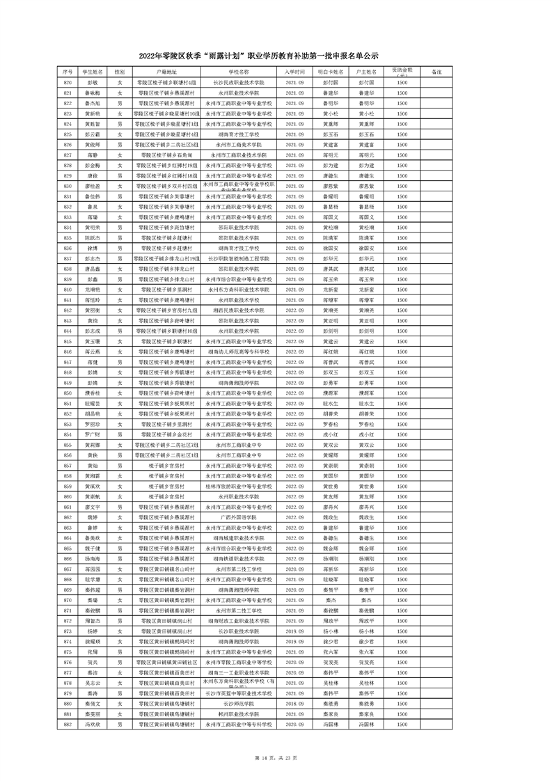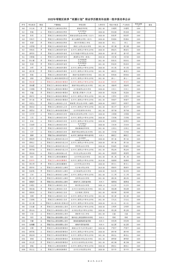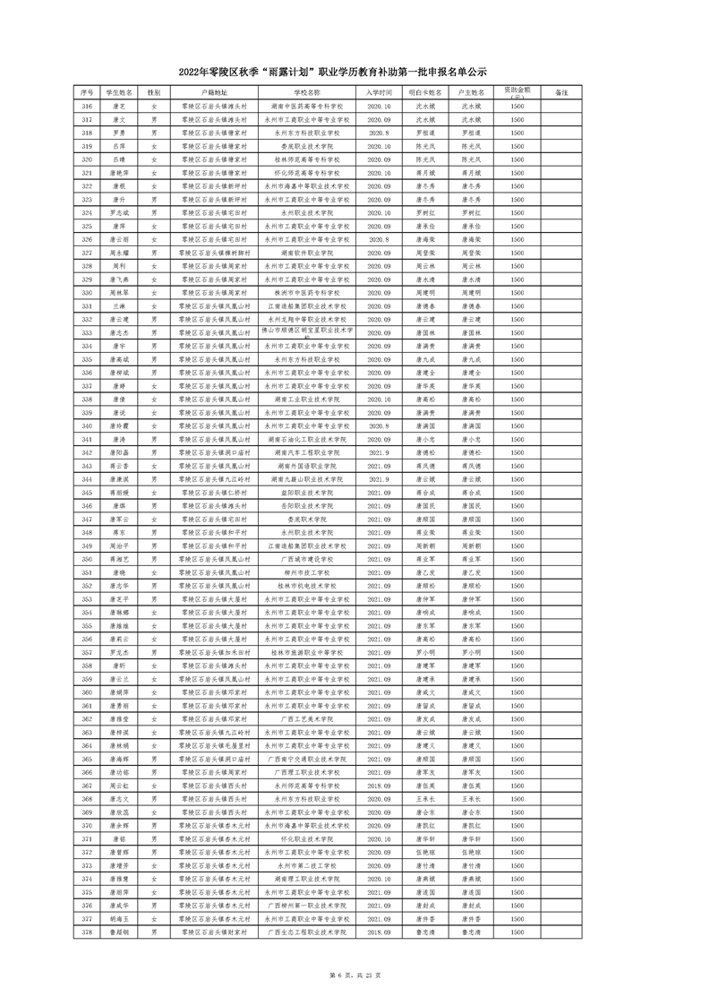 2022年零陵区秋季“雨露计划”职业学历教育补助第一批申报名单公示