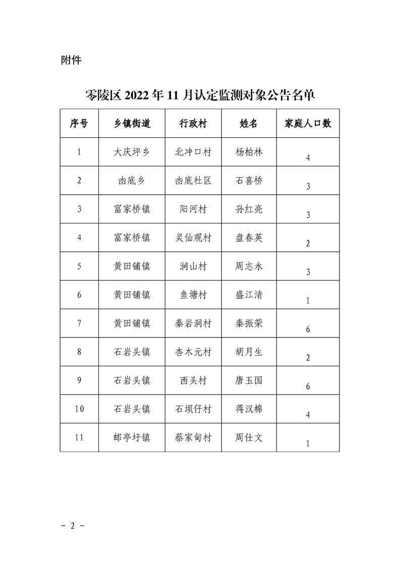零陵区2022年11月认定监测对象名单公告