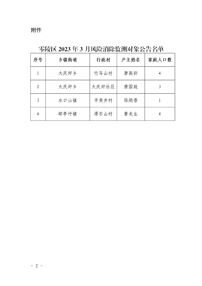 零陵区2023年3月风险消除监测对象名单公告