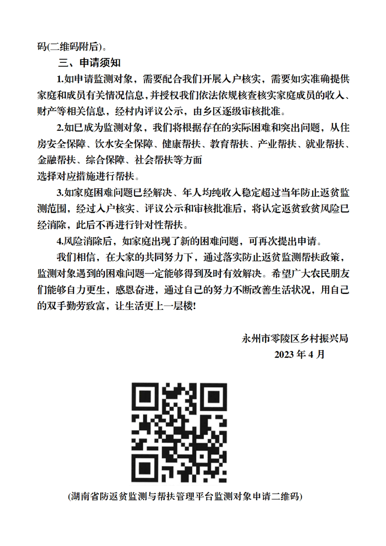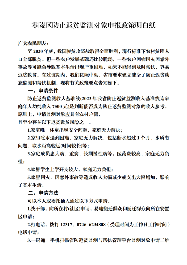 零陵区防止返贫监测对象申报政策“明白纸”