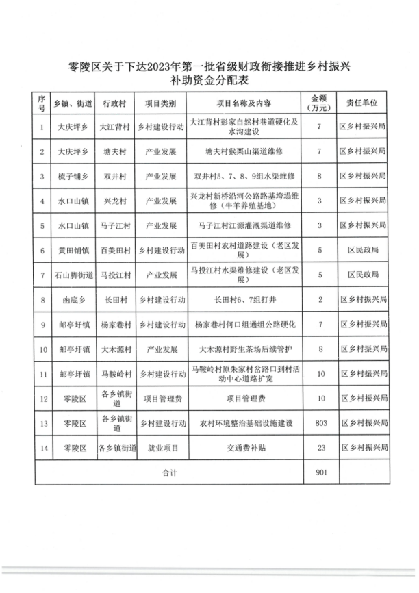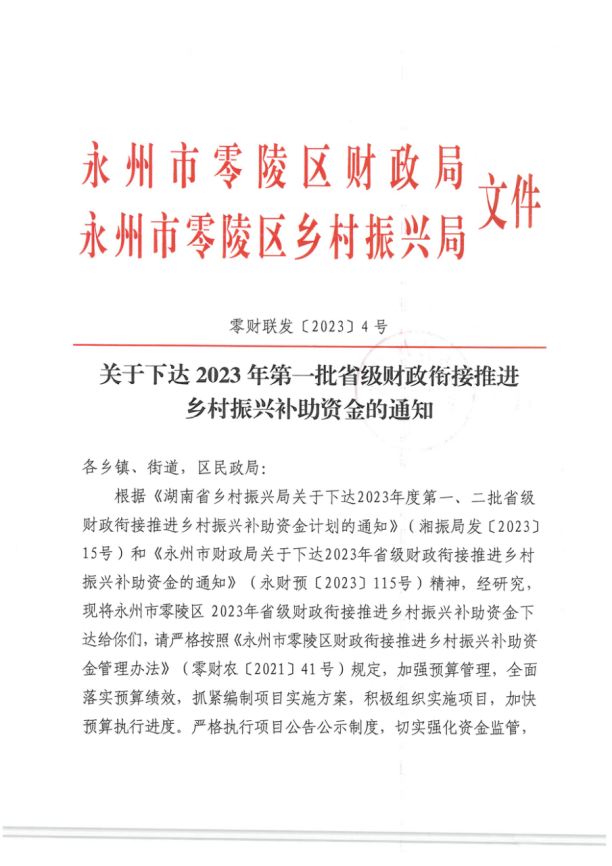 关于下达2023年第一批省级财政衔接推进乡村振兴补助资金的通知(零财联发〔2023〕4号)