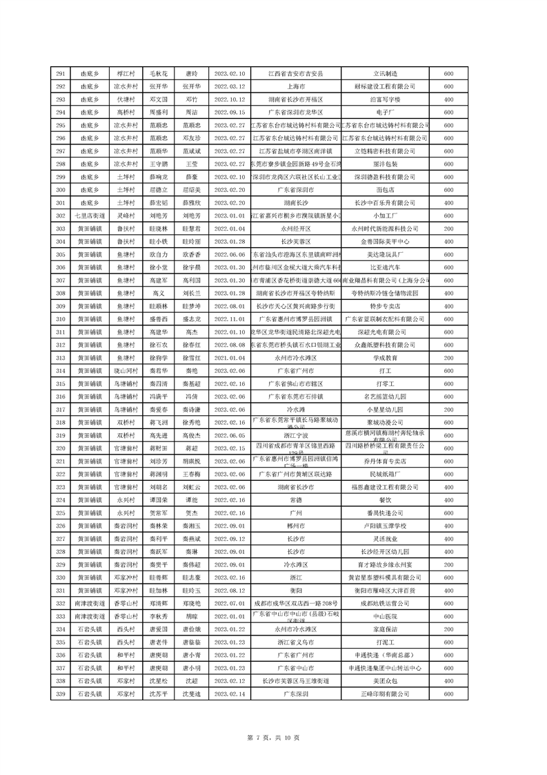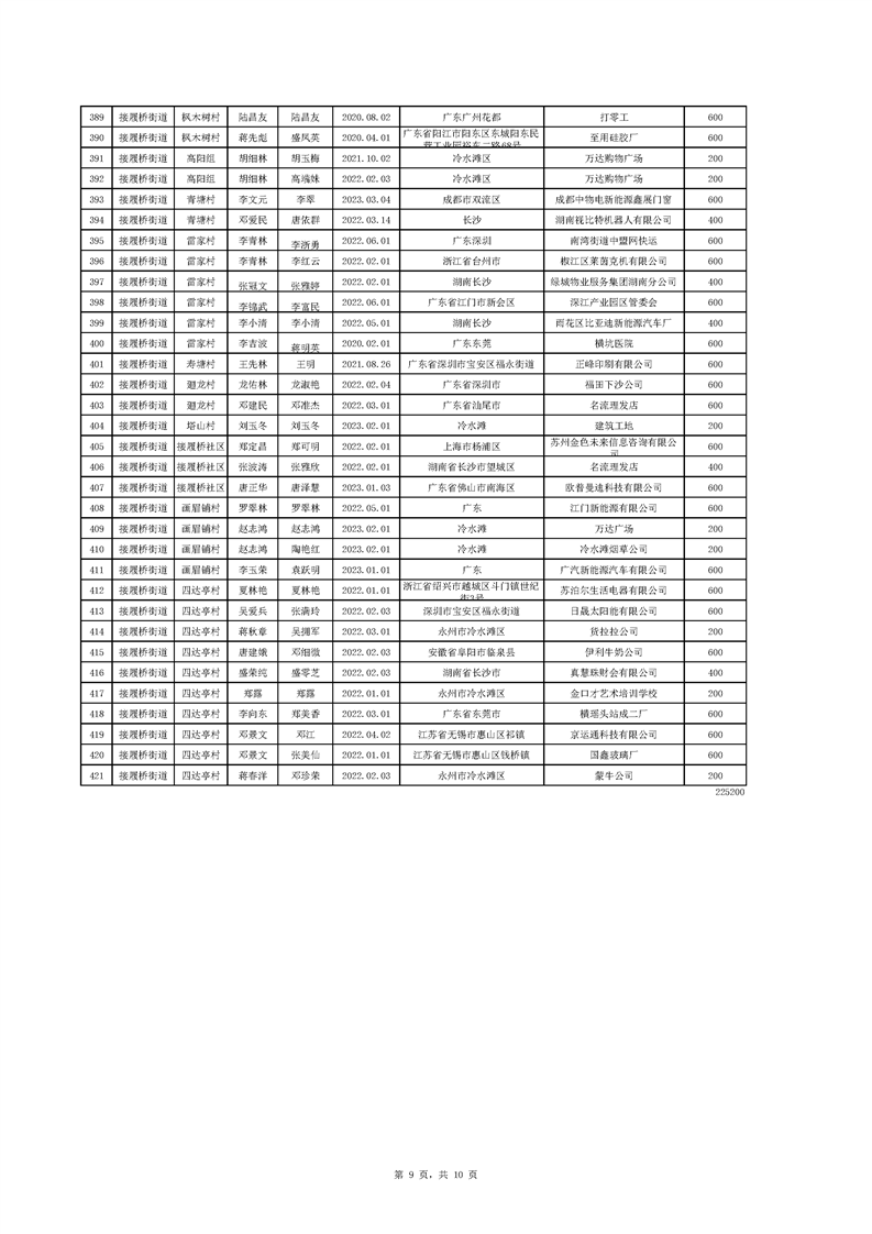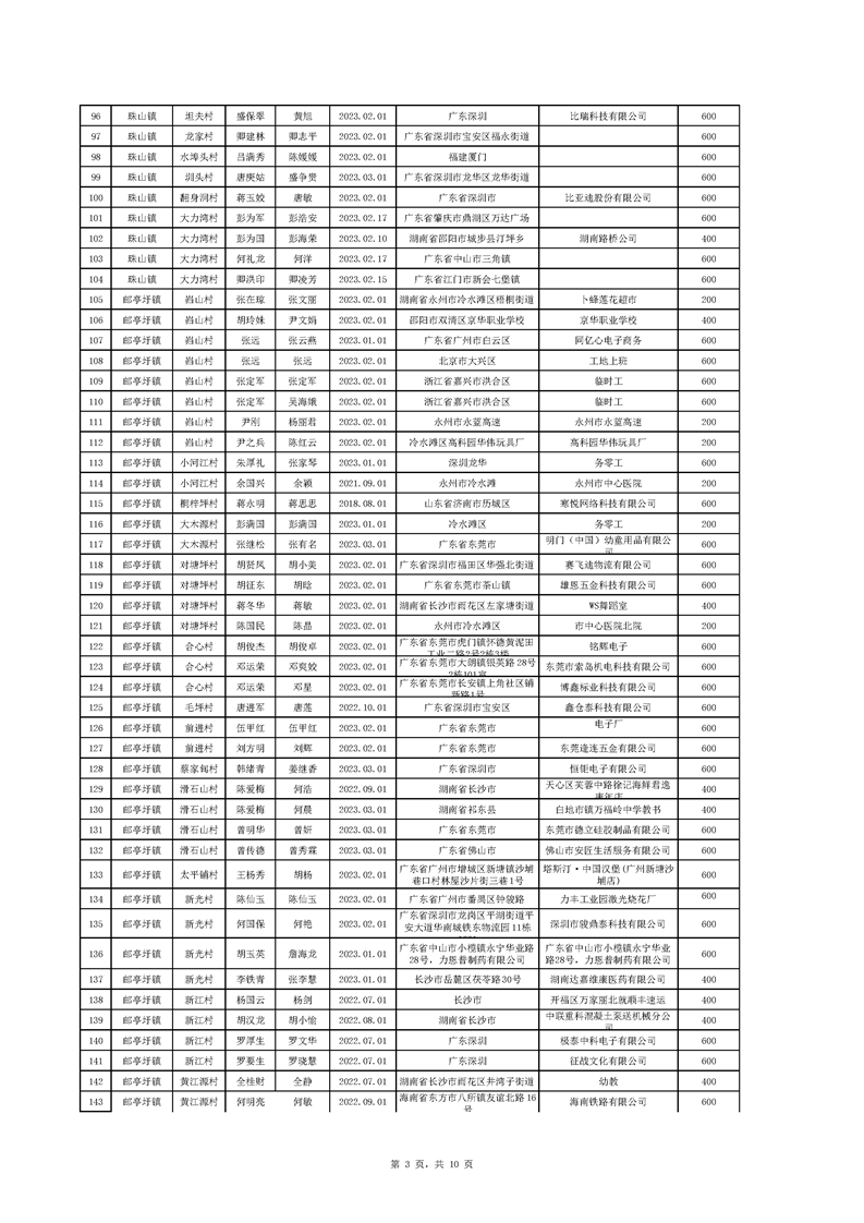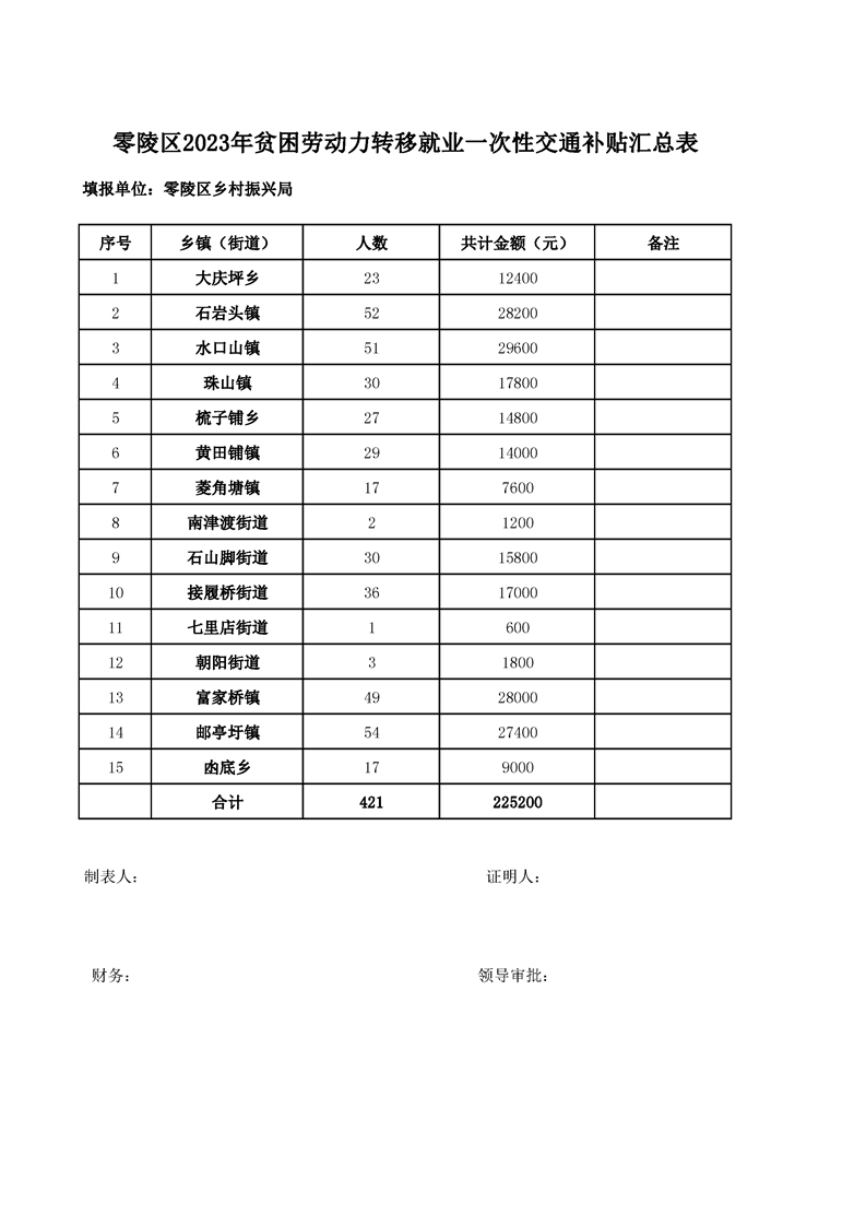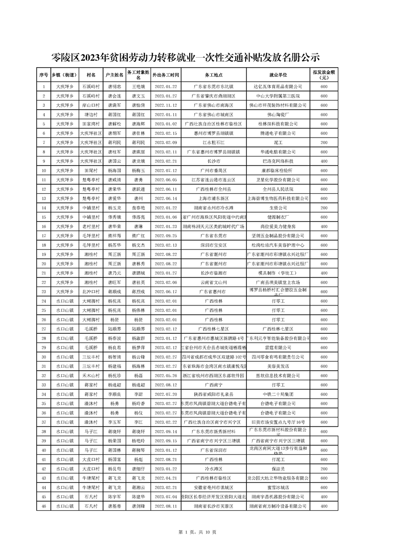 零陵区2023年贫困劳动能力转移性就业一次性交通补贴发放名册公示