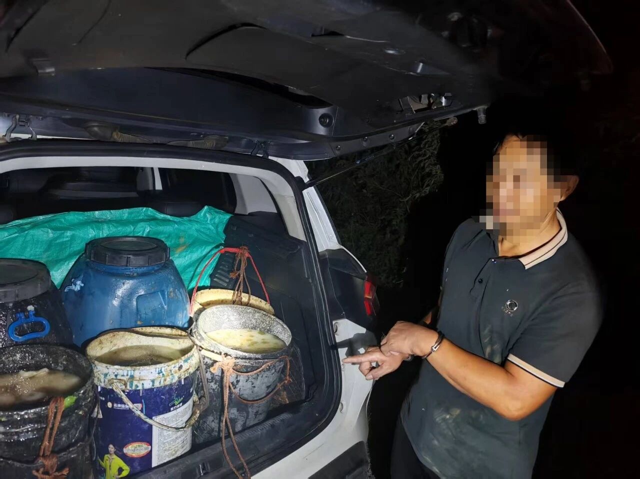 9月16日晚9时许,办案民警在石山脚街道马投江村馒冬山附近发现嫌疑车辆及人员踪迹,犯罪嫌疑人将车藏匿于乡间小路旁,佩戴手套、手持收集桶潜入林区作案。民警迅速分组布控,在车辆周边进行蹲守,约一小时后,当犯罪嫌疑人蒋某、周某将盗得的松油搬运至后备箱、正准备驾车逃离时,被守候已久的民警一举抓获。现场查获作案用手套、收集桶若干及被盗松油等证据。经审讯,犯罪嫌疑人对多次结伙盗窃松油的违法犯罪事实供认不讳。目前,两人已被依法刑事拘留,案件正在进一步办理中。