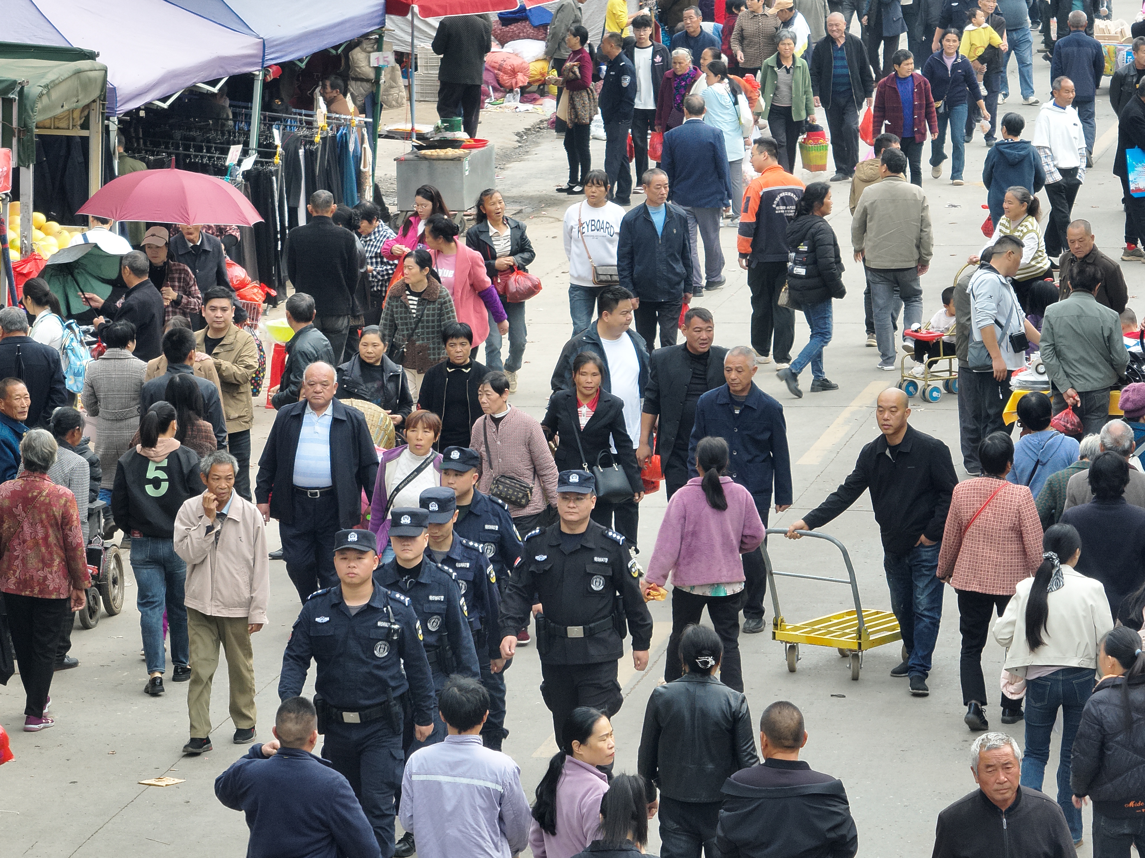 近日,零陵公安分局巡特警大队组织珠山、石岩头、黄田铺三支“快反135”应急处突中队在珠山镇集结,采用“地面巡逻+空中巡查”立体防控模式,为“九月九”传统赶集日保驾护航。这场吸引5万余人的民俗盛会,汇聚湘桂粤三地商户游客,现场人头攒动,热闹非凡。