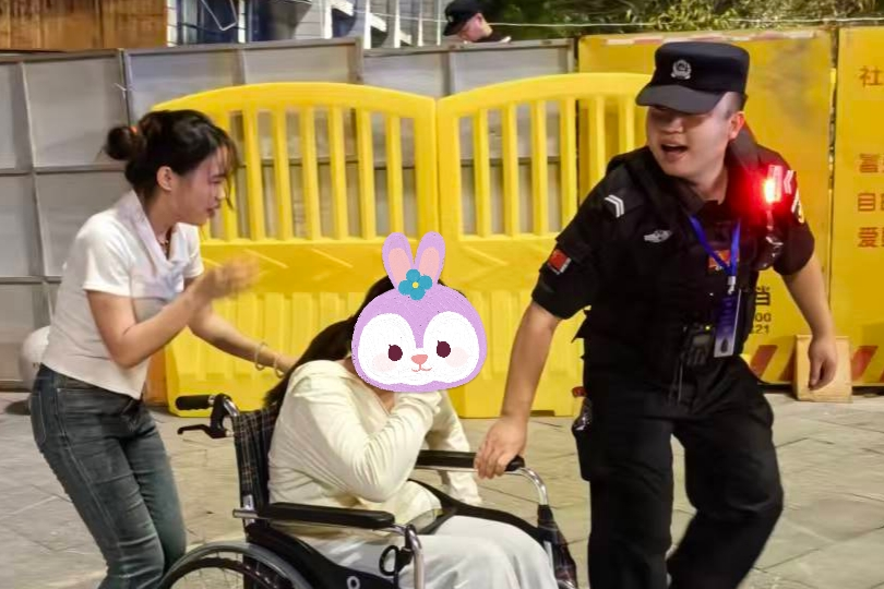 执勤辅警暖心帮助行动不便的球迷入场
