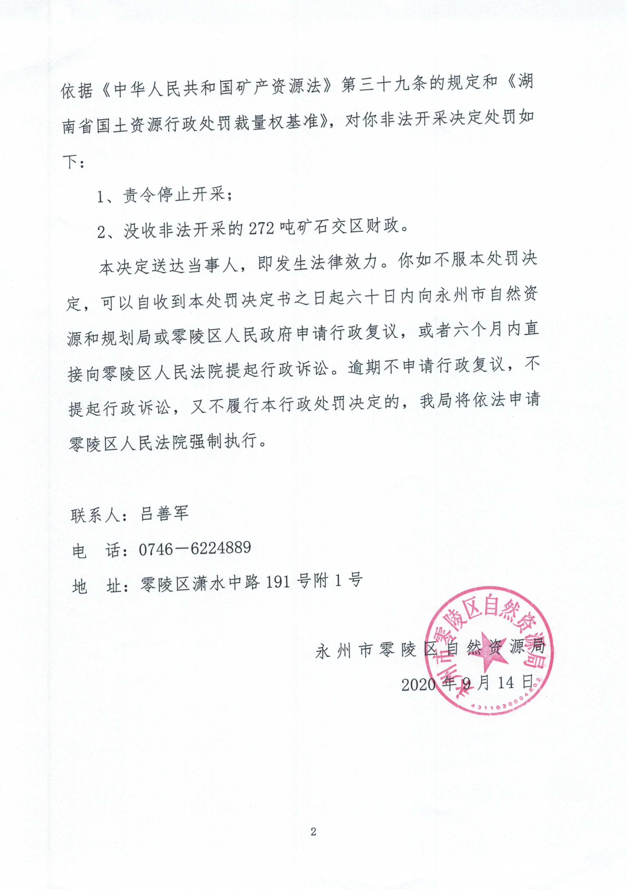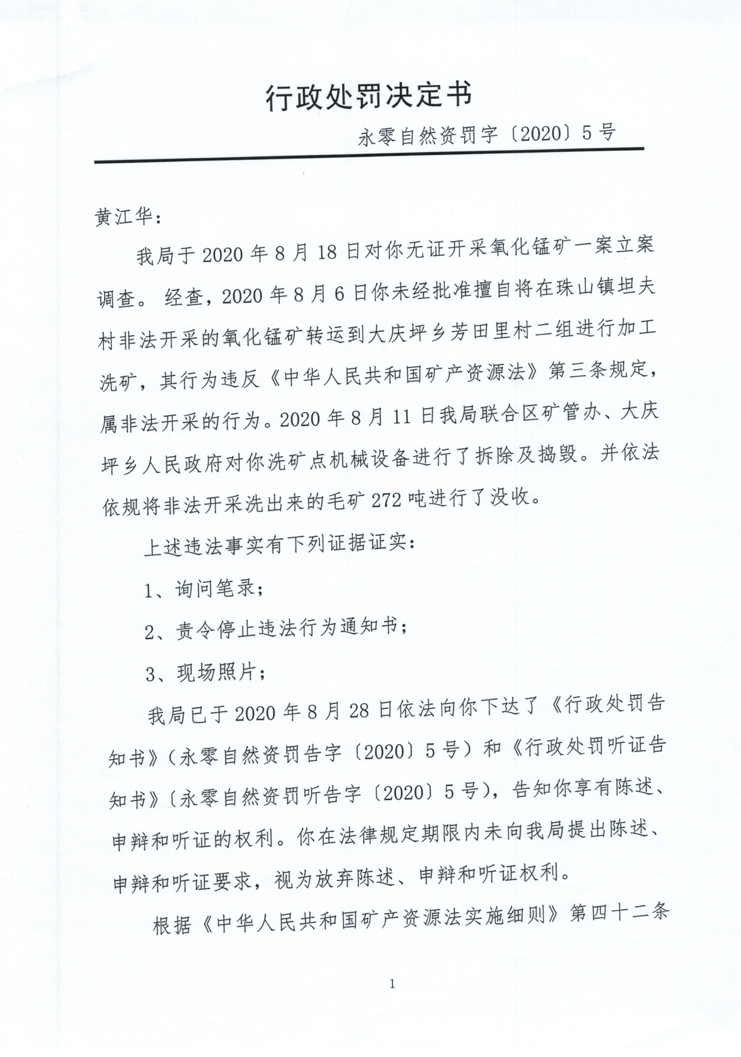 行政处罚决定书(黄江华)永零自然资罚字〔2020〕05号