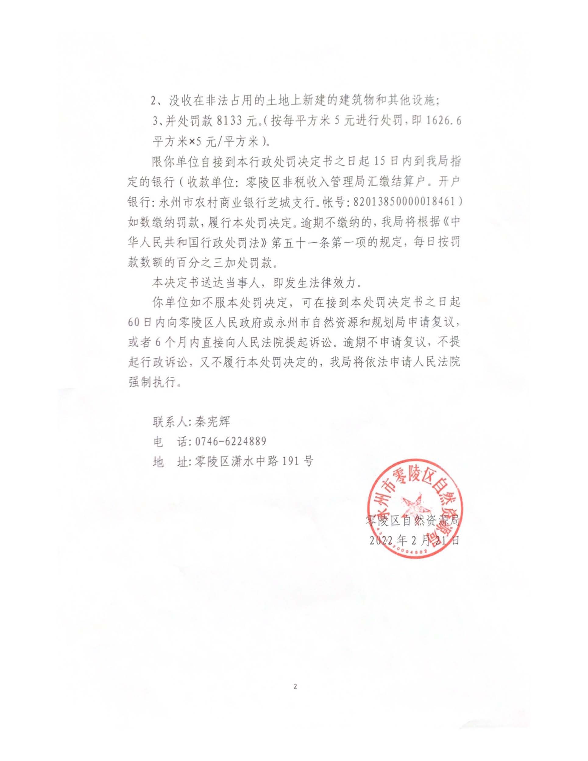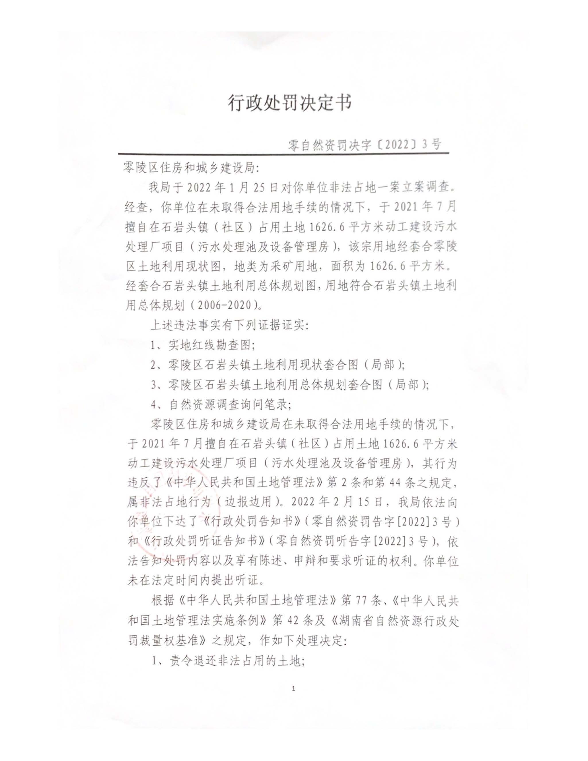 行政处罚决定书(零陵区住房和城乡建设局)零自然资罚字〔2022〕3号