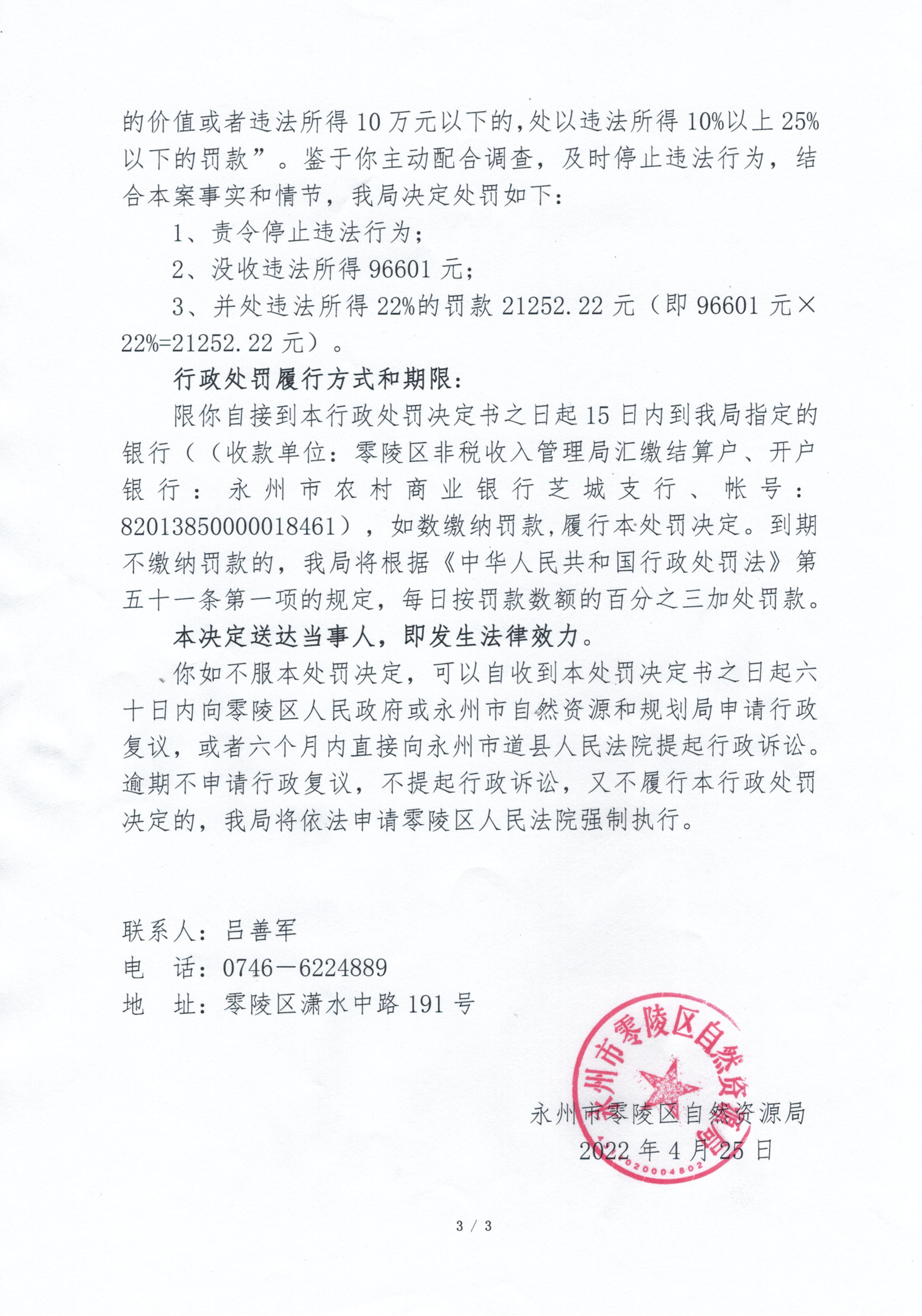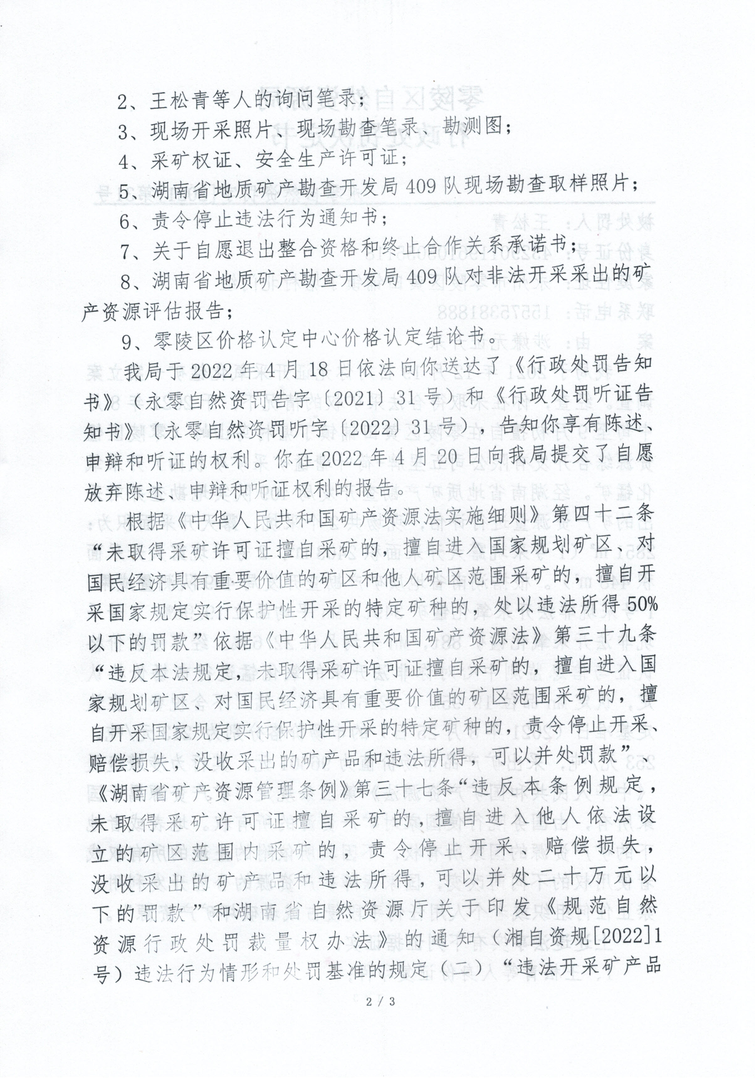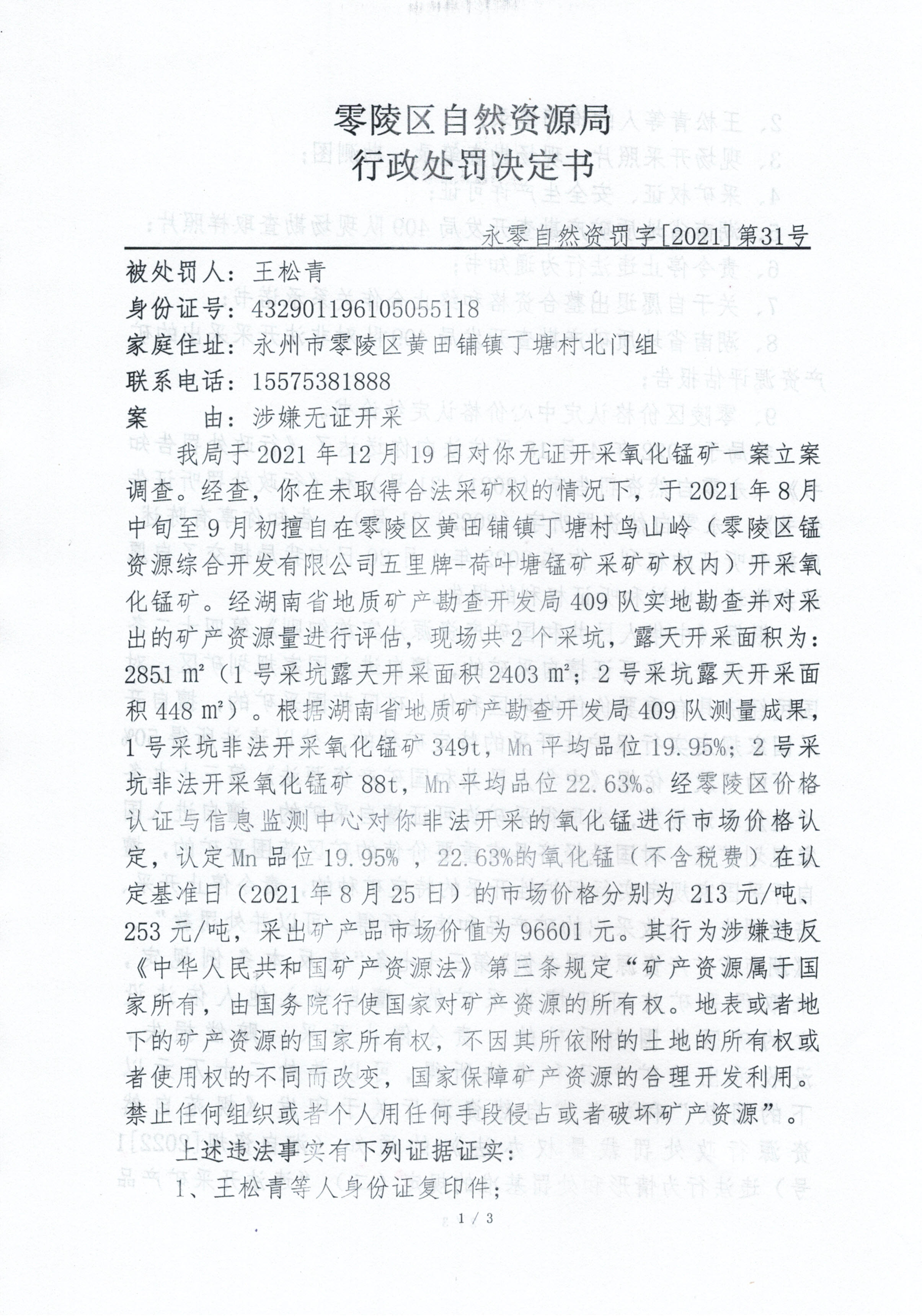 行政处罚决定书(王松青)永零自然资罚字〔2021〕31号