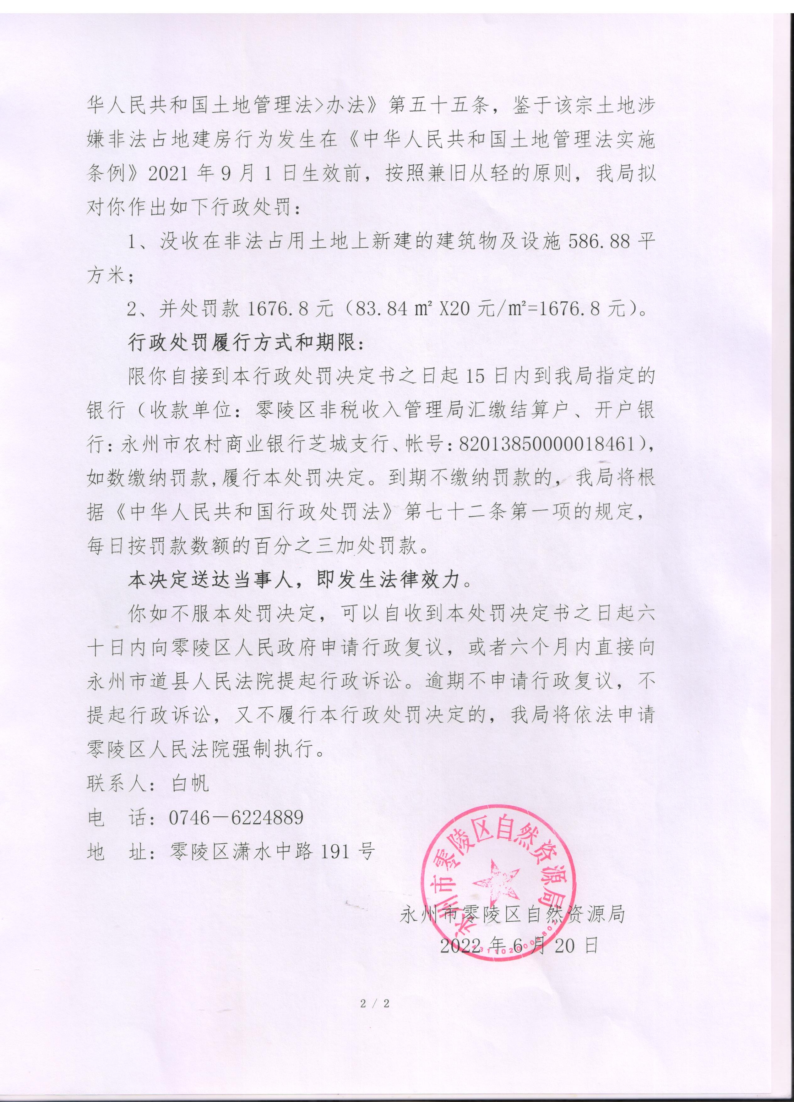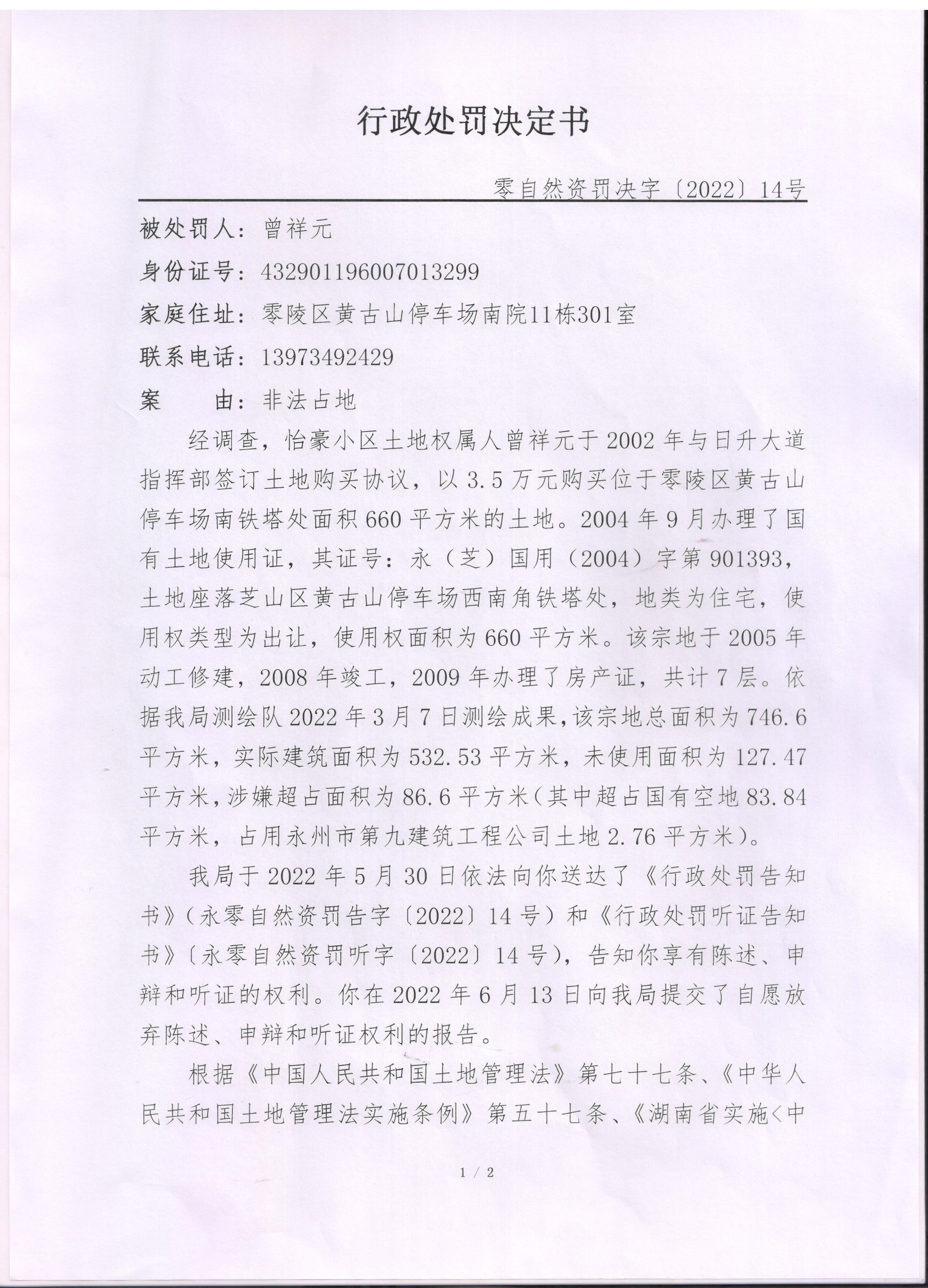 行政处罚决定书(曾祥元)零自然资罚字〔2022〕14号