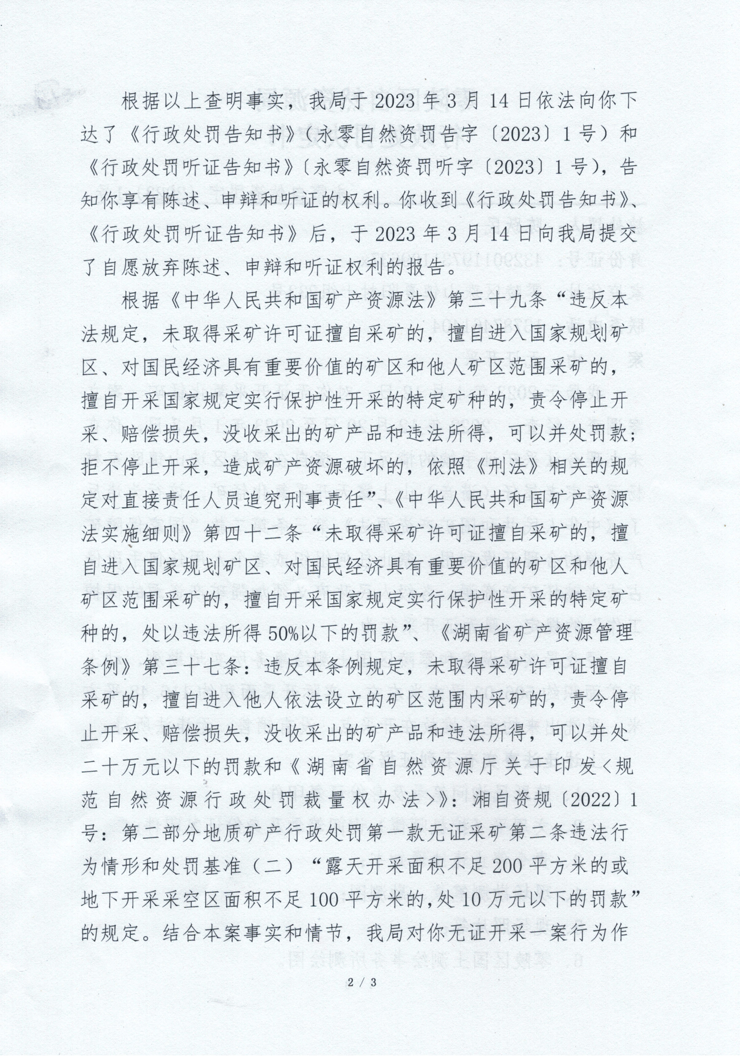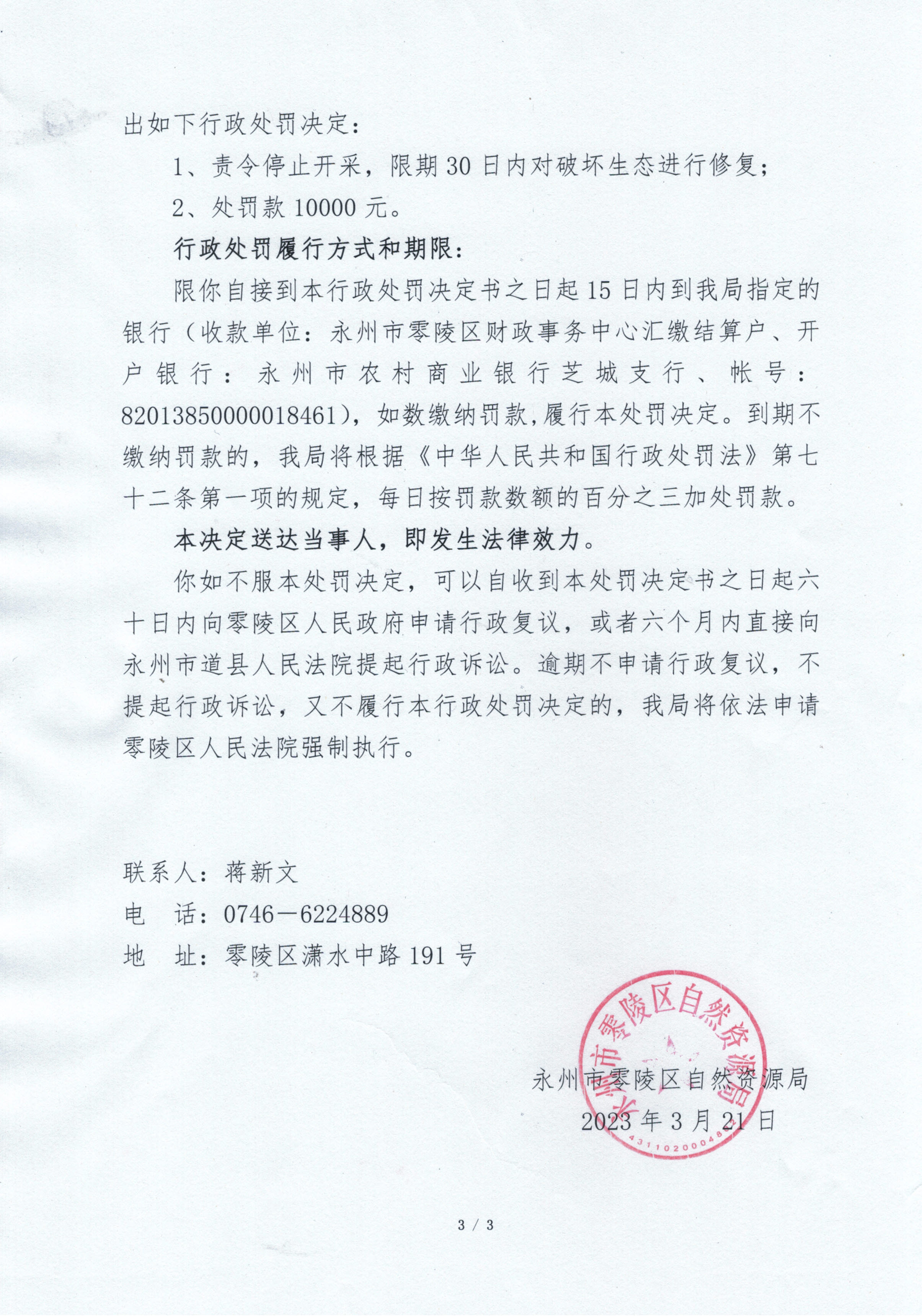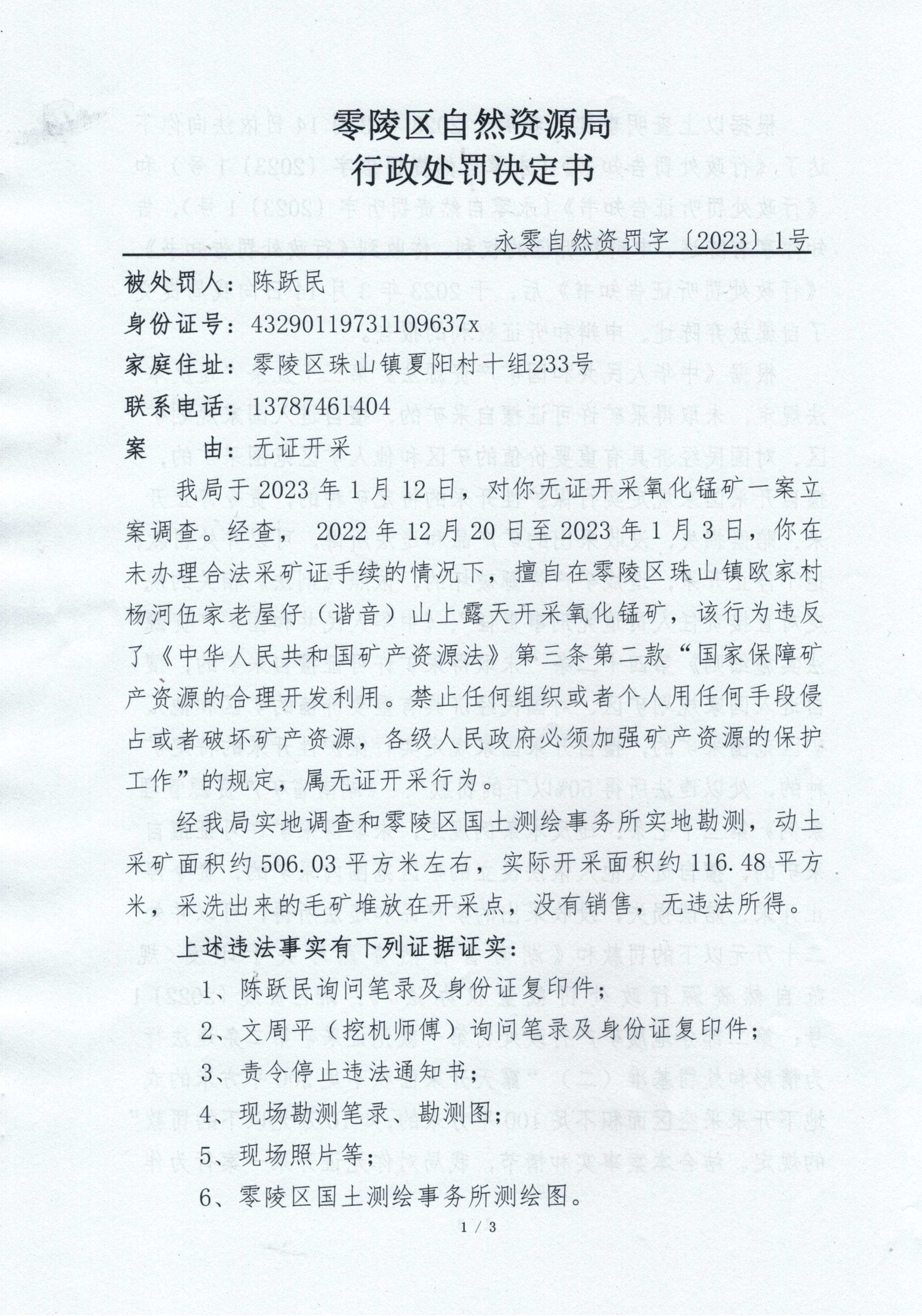 行政处罚决定书(陈跃民)永零自然资罚【2023】1号