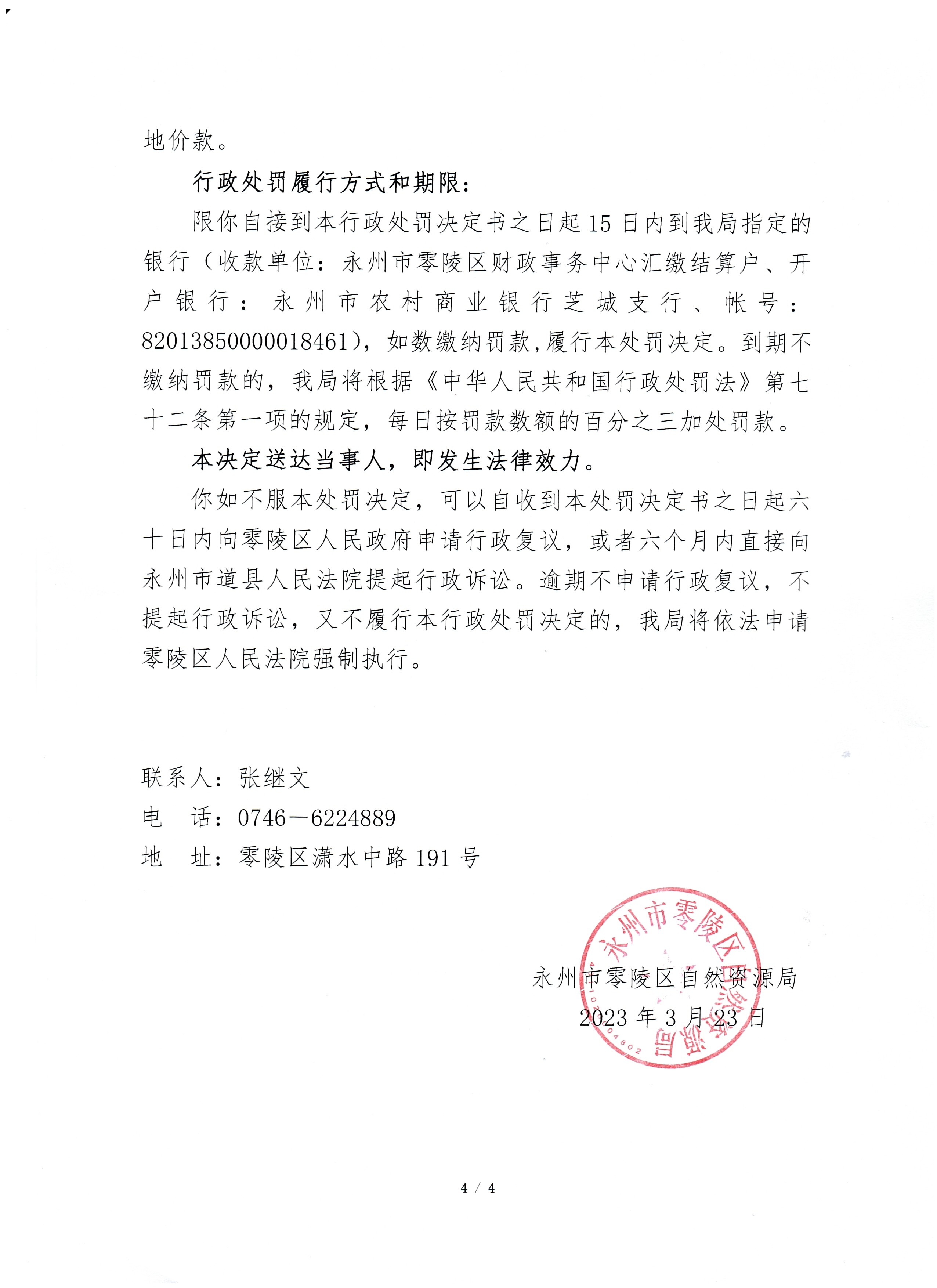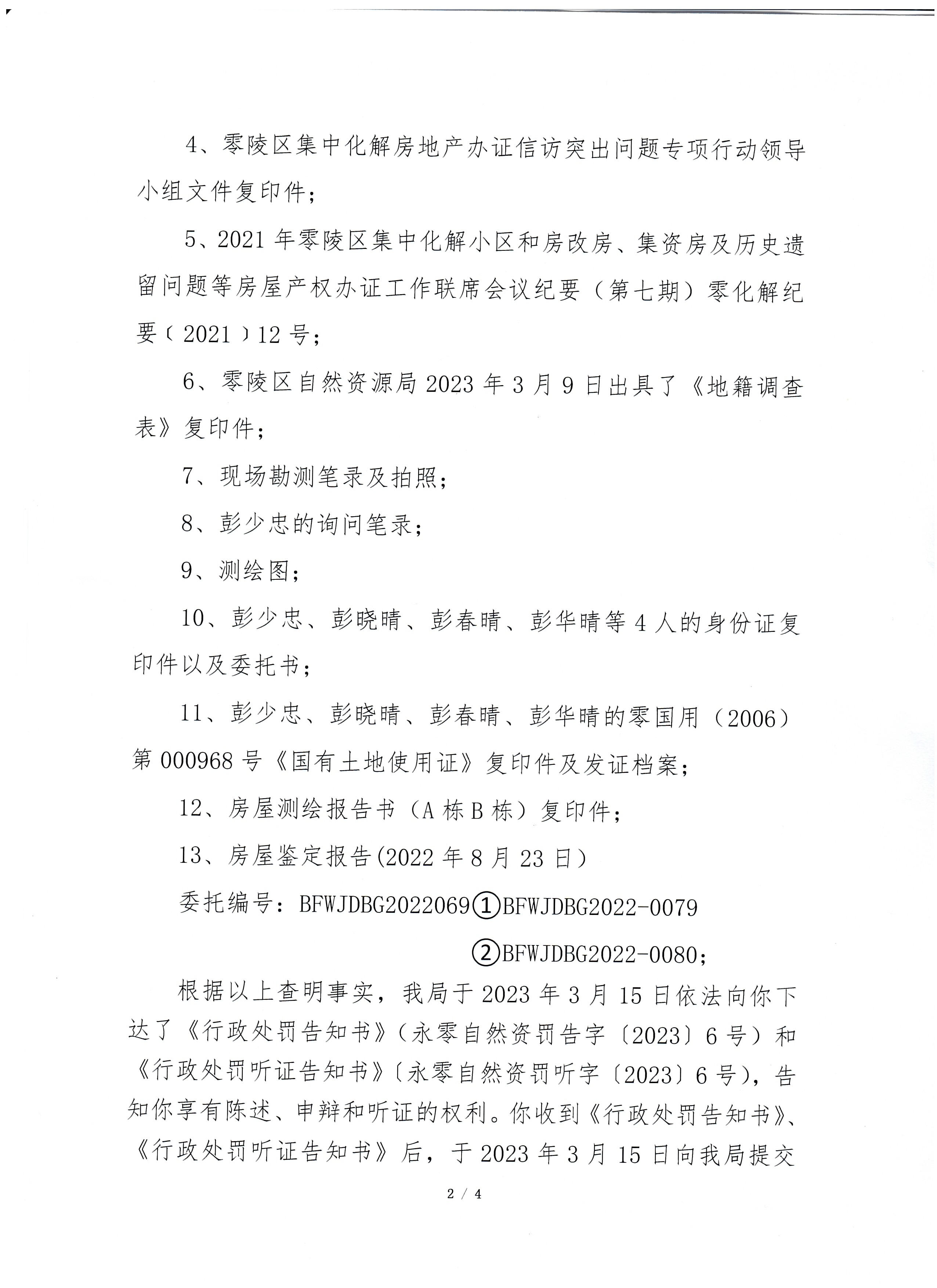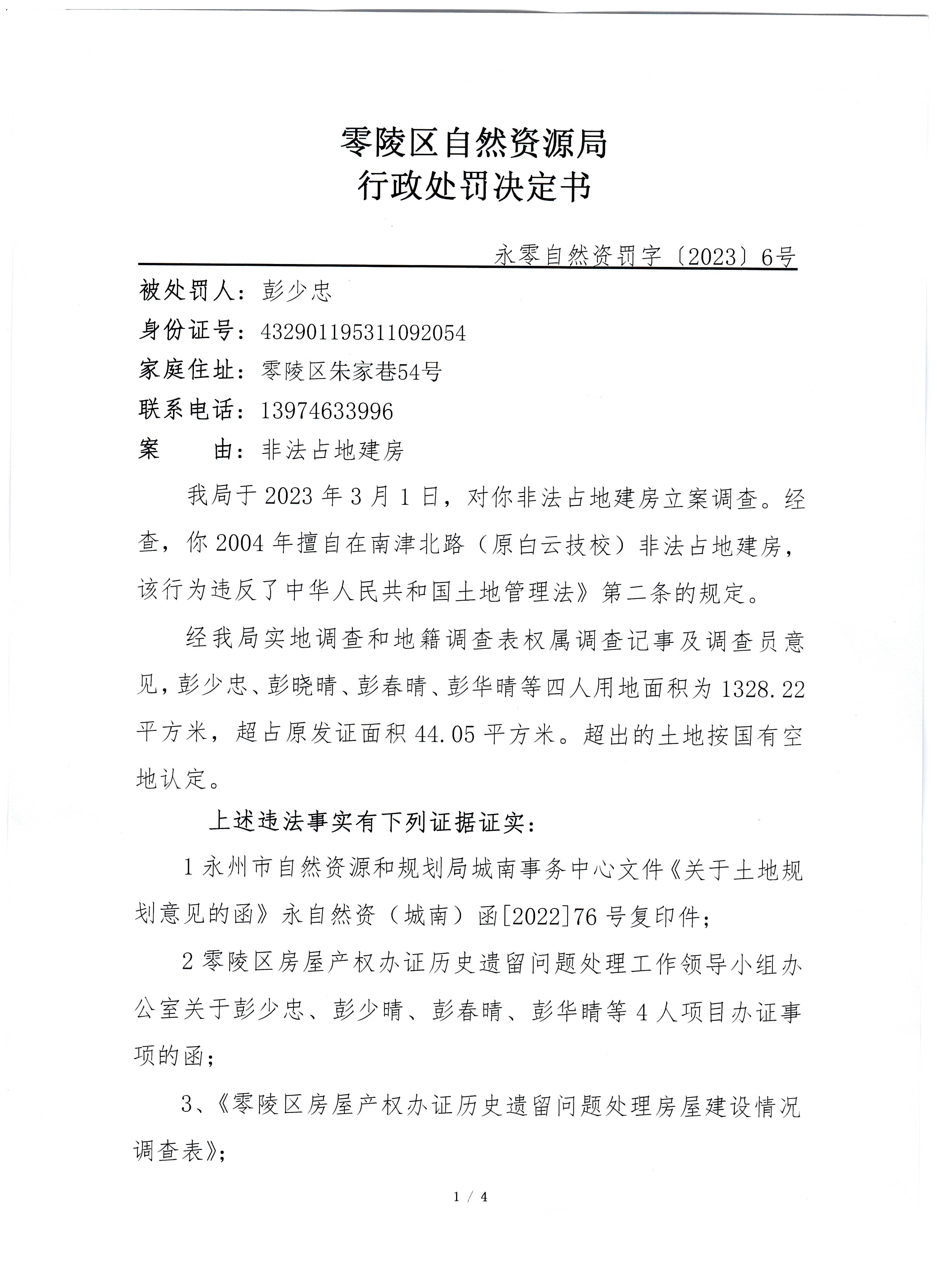 行政处罚决定书(彭少忠)永零自然资罚字〔2023〕6号