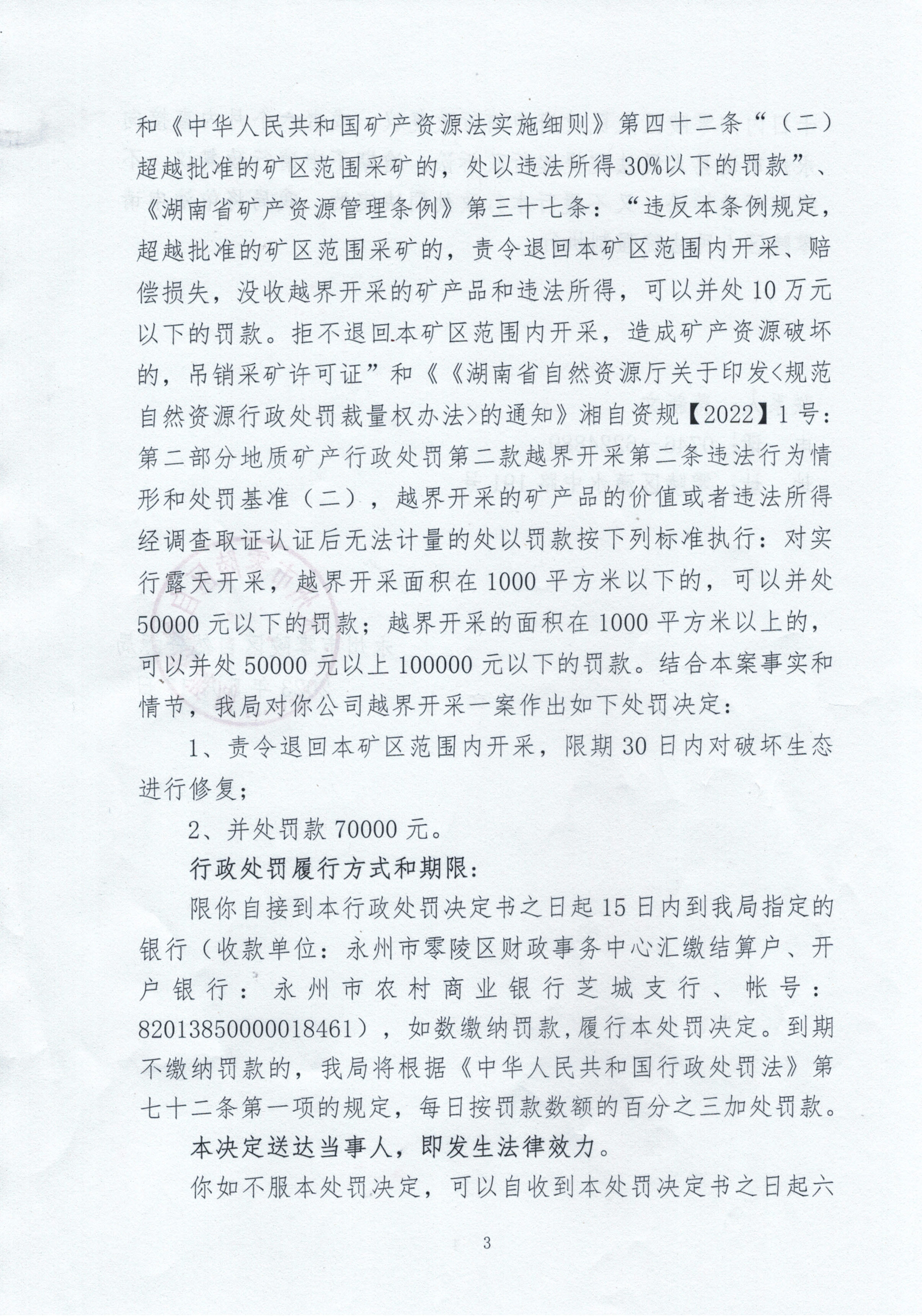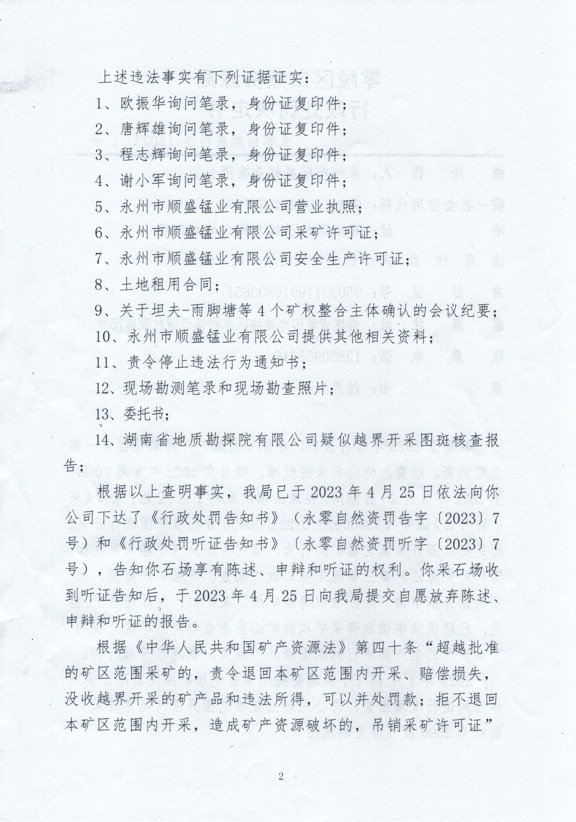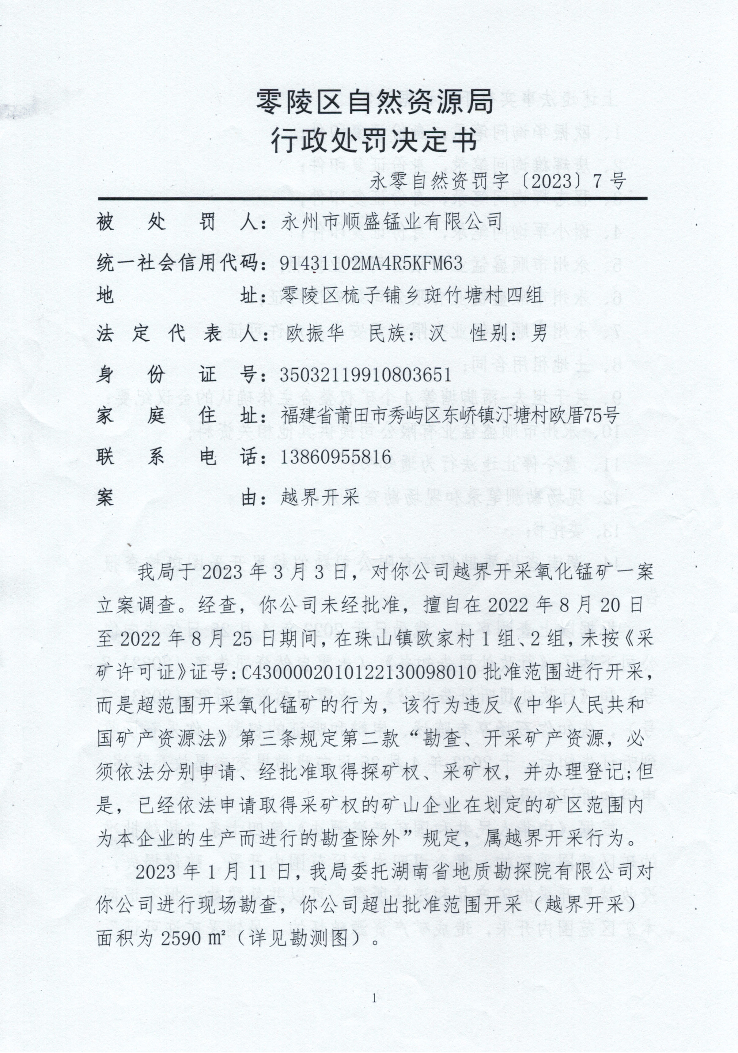 行政处罚决定书(永州市顺盛锰业有限公司)永零自然资罚字〔2023〕7号