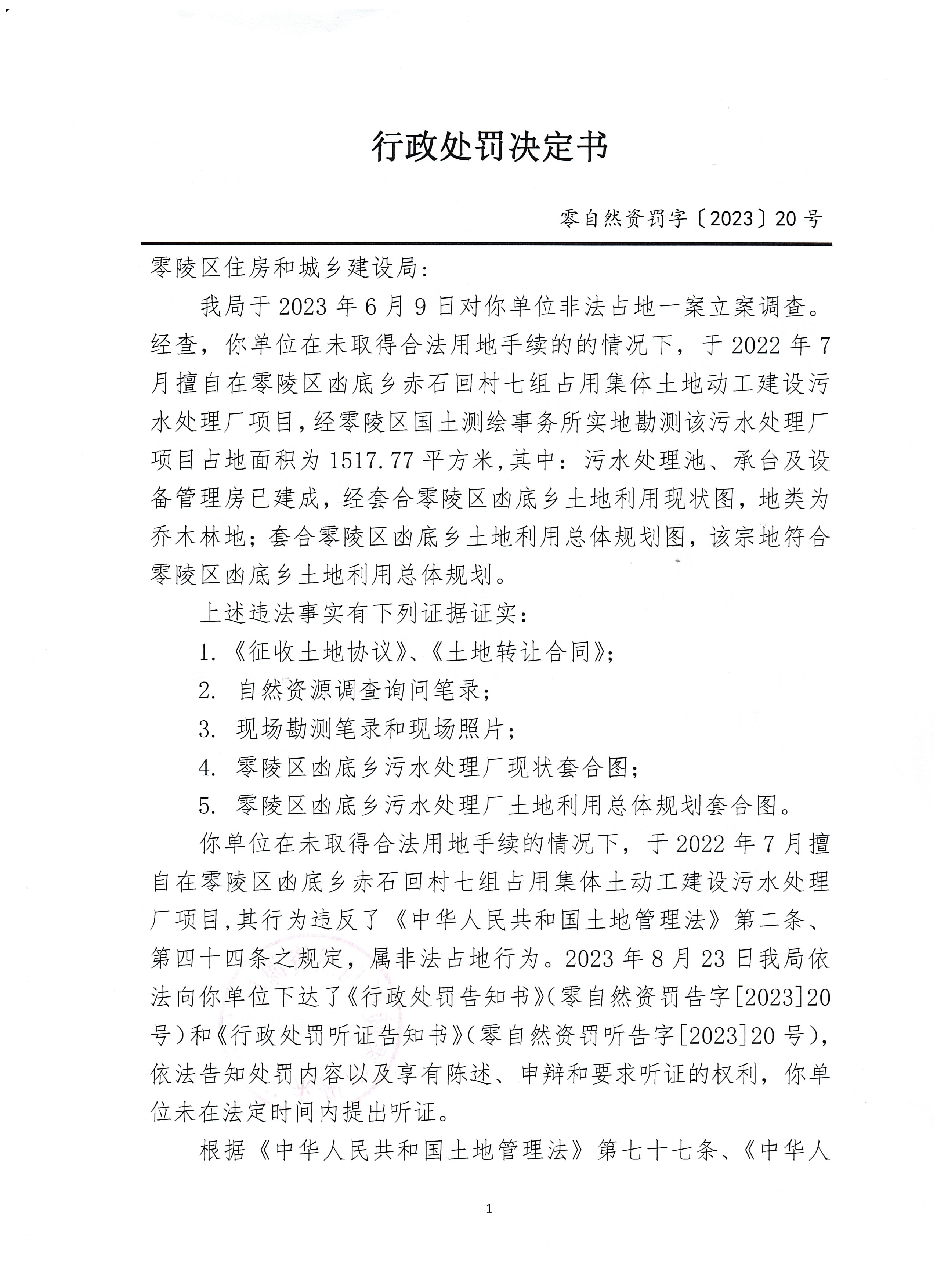 行政处罚决定书(零陵区住房和城乡建设局)零自然资罚字〔2023〕20号