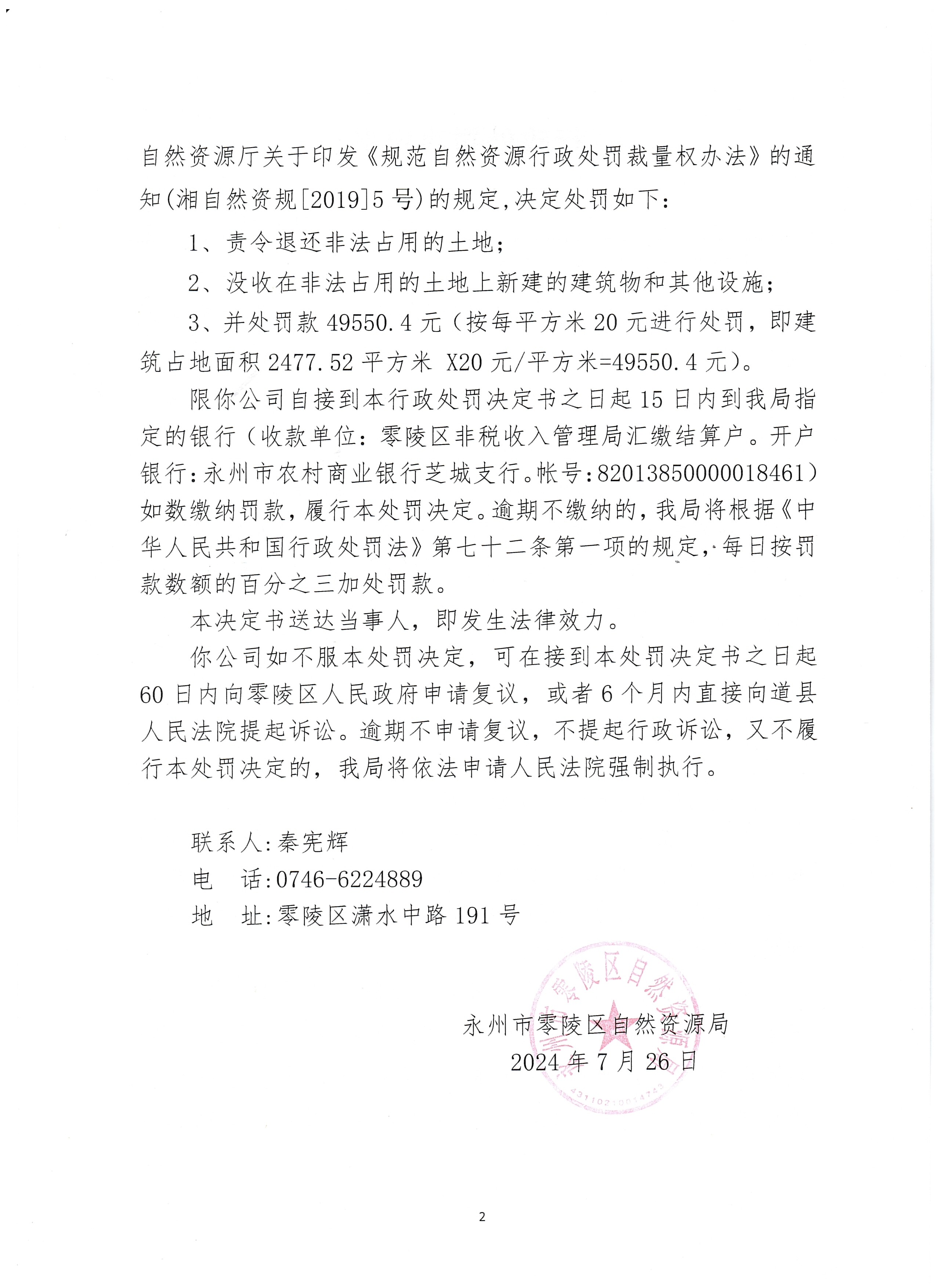 行政处罚决定书(永州海瑞新材料有限责任公司)永零自然资罚字〔2024〕19号