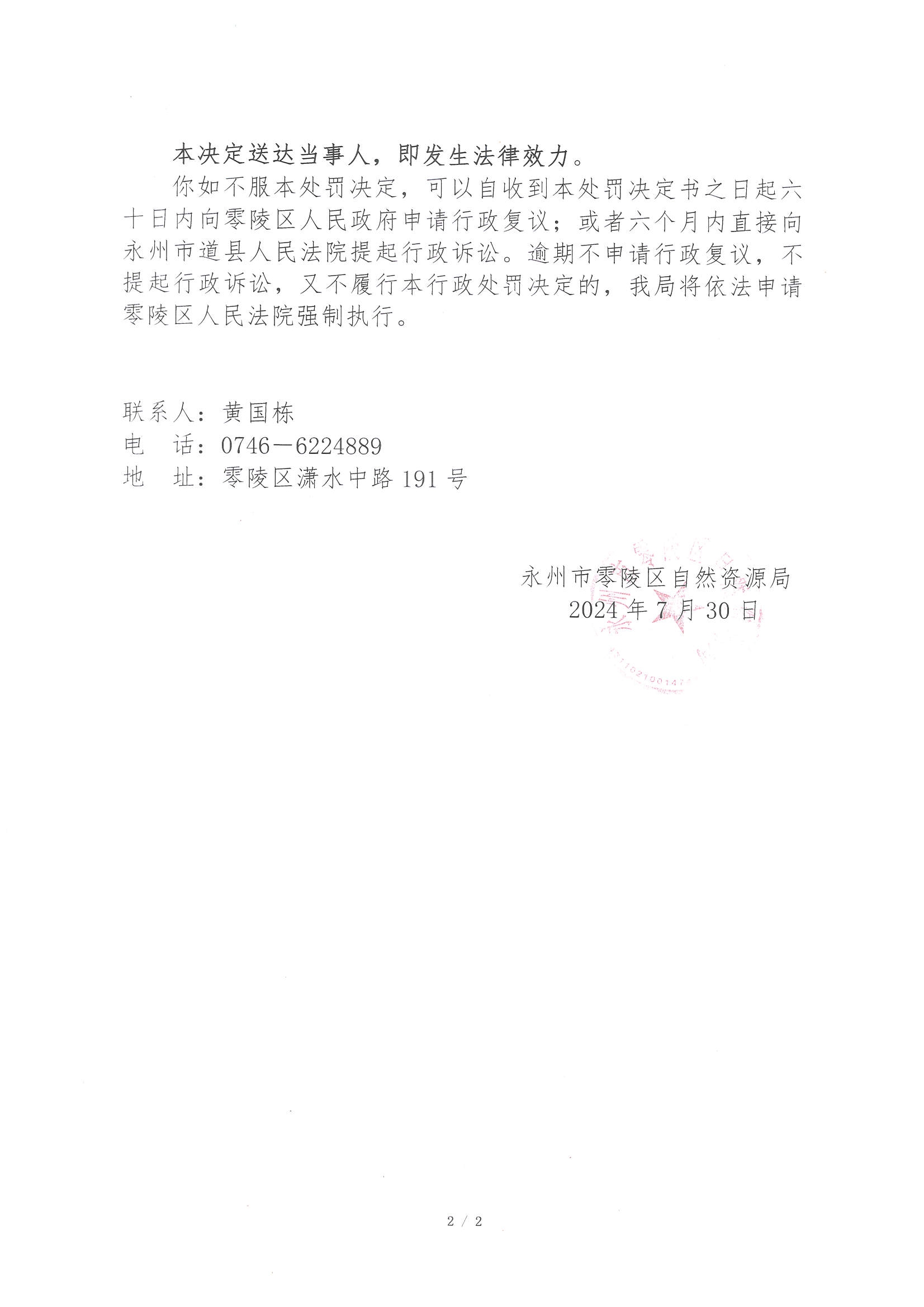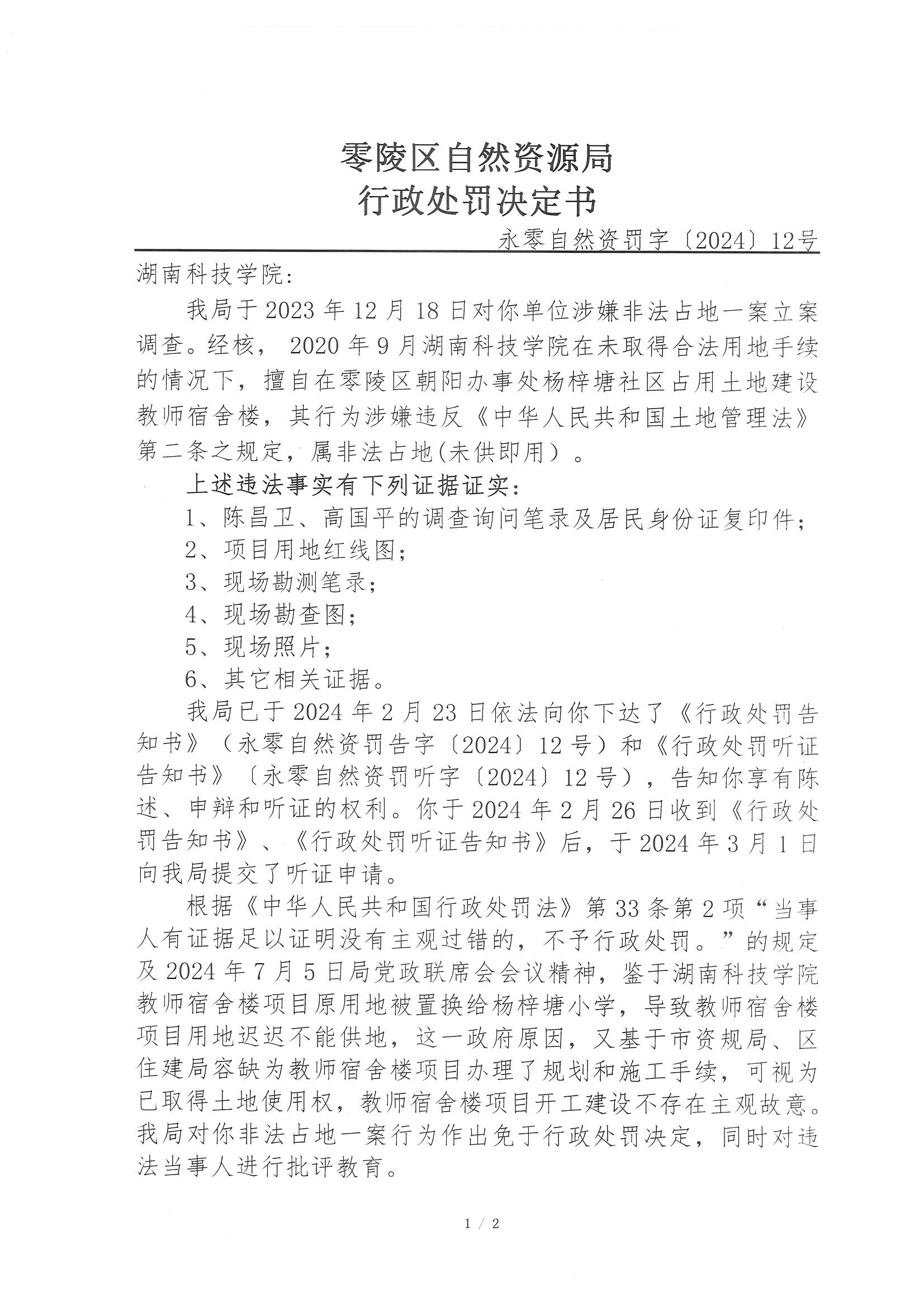 行政处罚决定书(湖南科技学院)永零自然资罚字〔2024〕12号