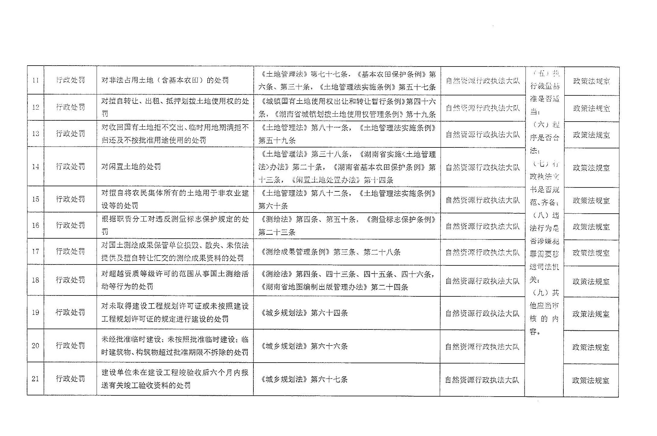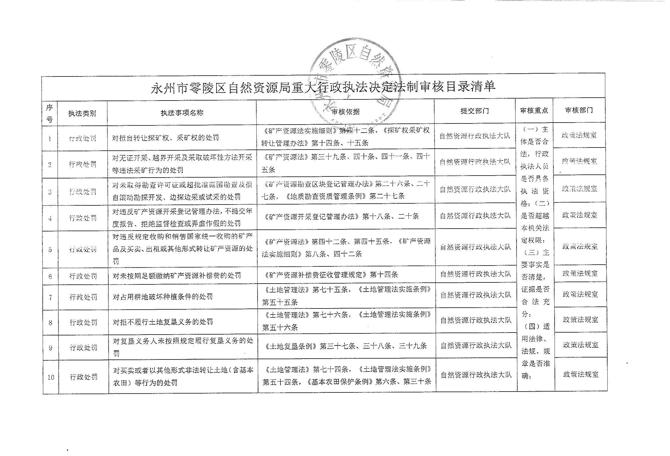 零陵区自然资源局重大行政执法决定法制审核目录清单