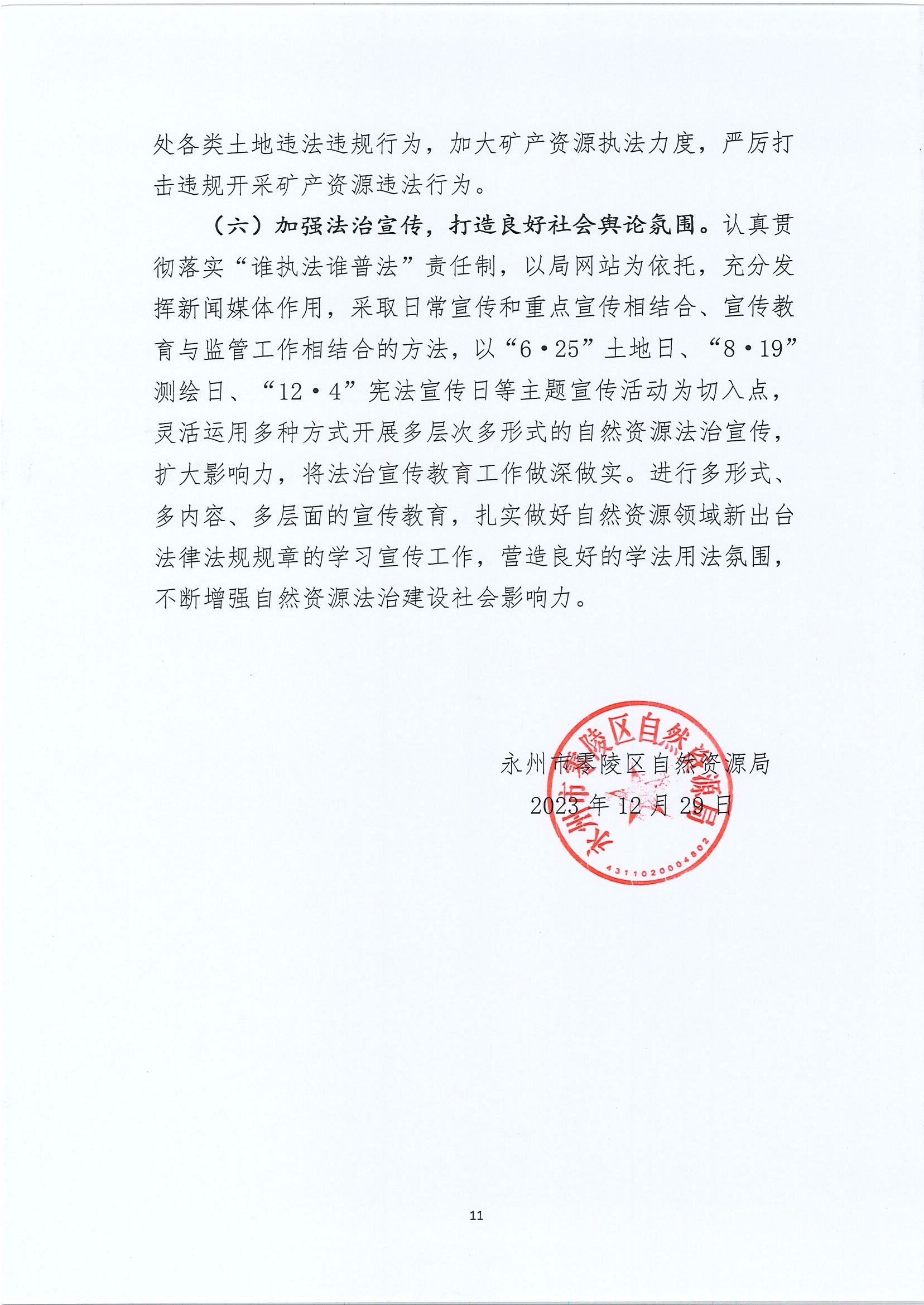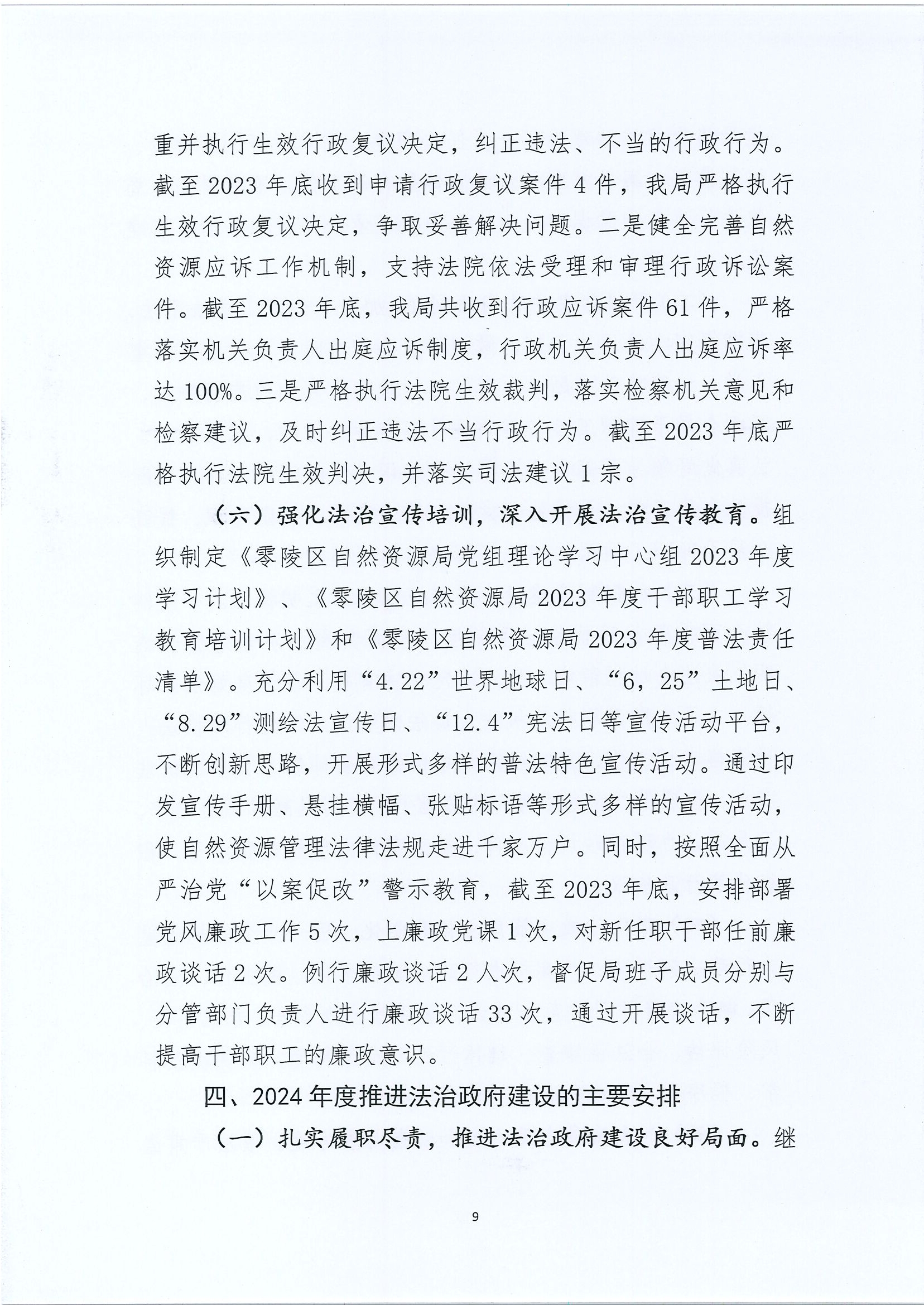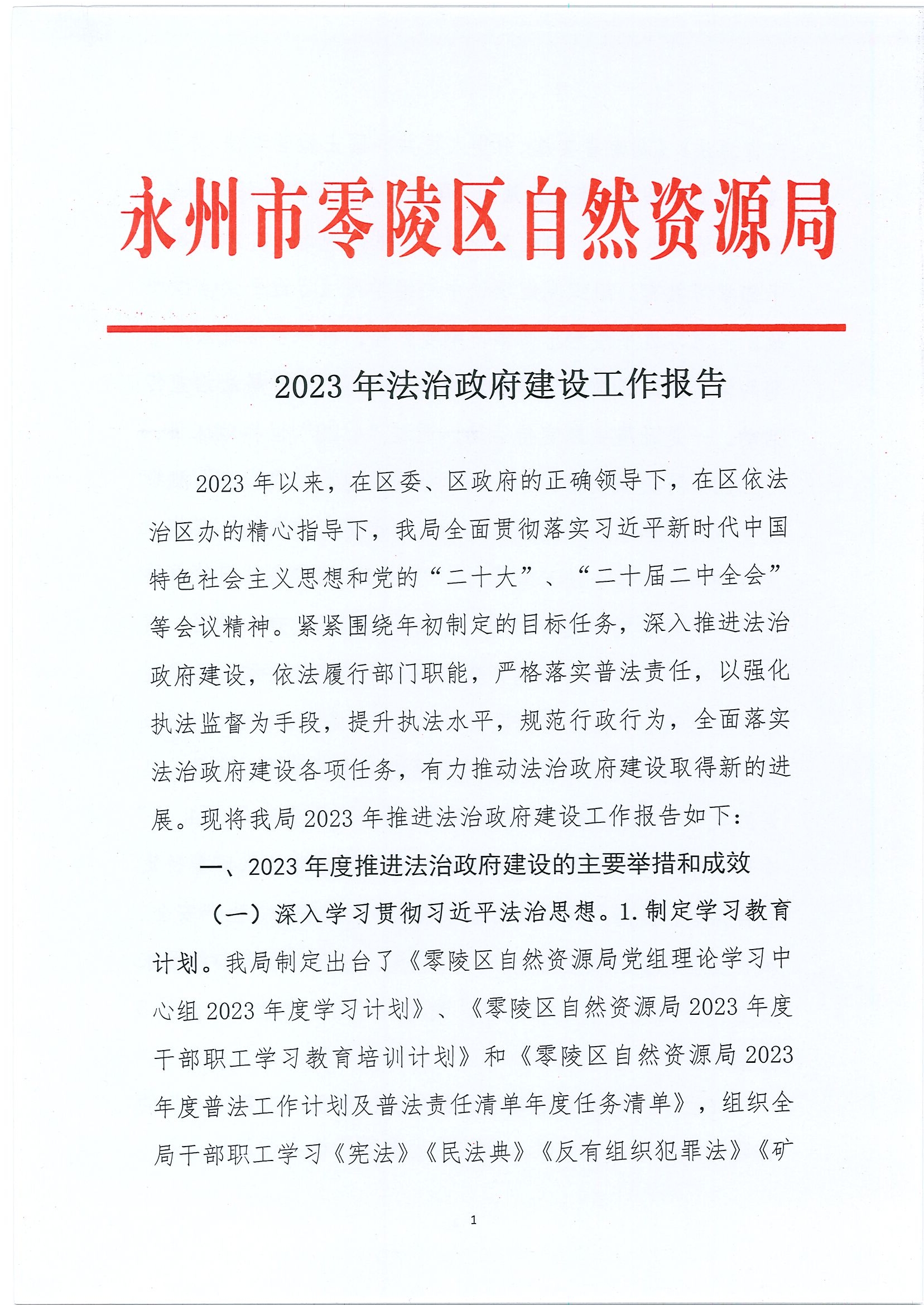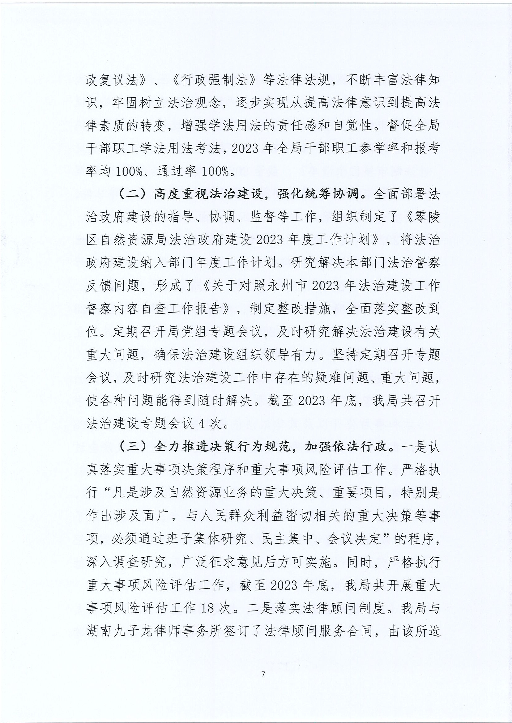 2023年零陵区自然资源局法治政府建设工作报告