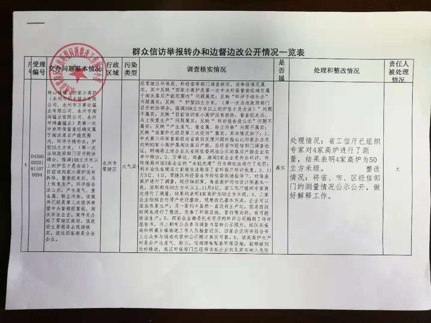 公开群众信访举报转办和边督边改公开情况一览表(二)