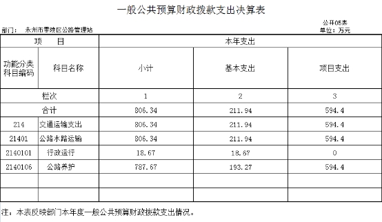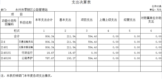 第二部分:永州市零陵区公路管理站2018年度部门决算表