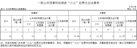 2018年度单位“三公”经费支出总额为13.86万元,比年初预算14万元减少了0.14万元,其中:公务用车运行维护费11.87万元,比年初预算数减少0.13万元;公务接待费1.99万元与年初预算数基本持平。