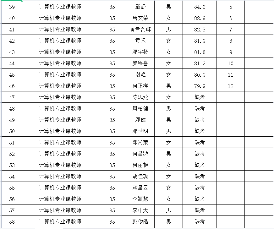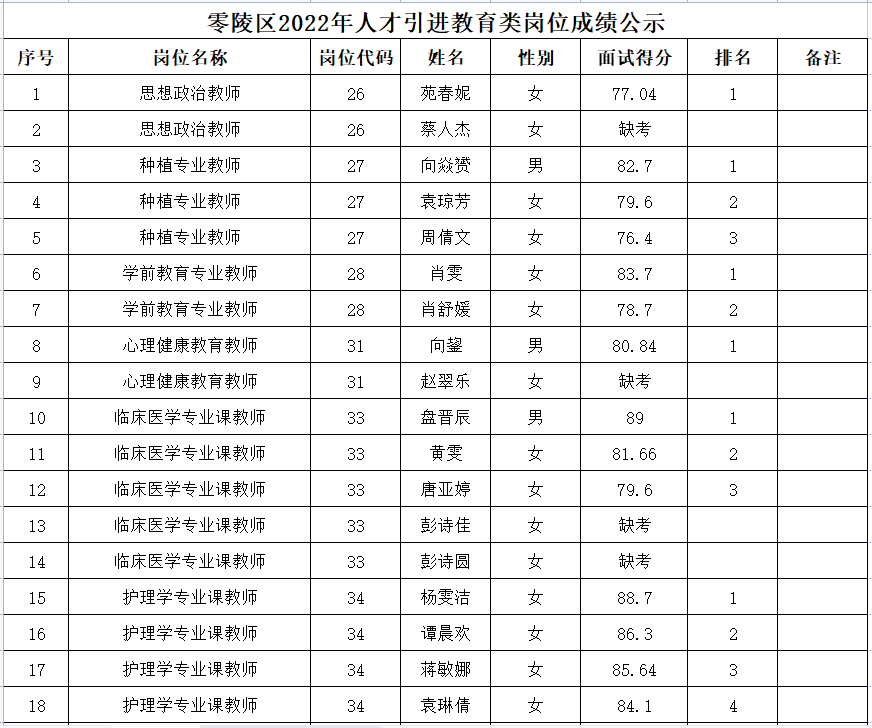 零陵区2022年人才引进教育类岗位成绩公示