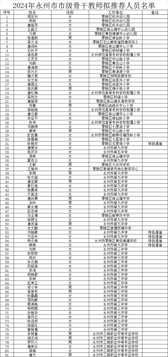 零陵区2024年市级骨干教师拟推荐人员名单公示