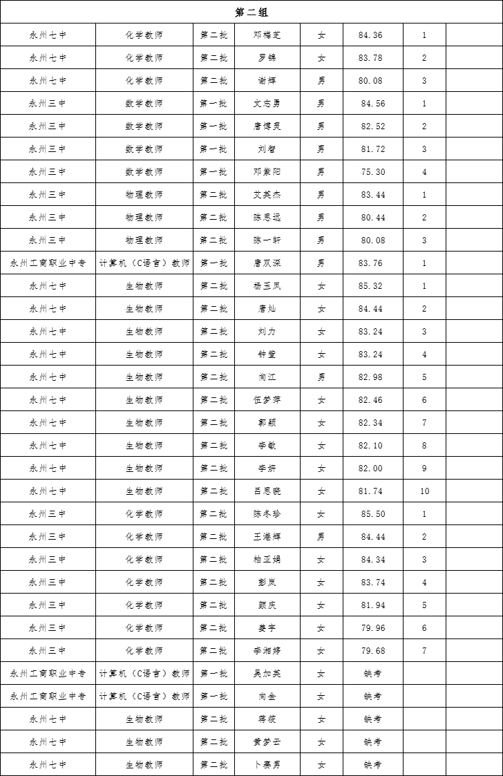 零陵区2025年人才引进面试成绩排名公布(教育类岗位)