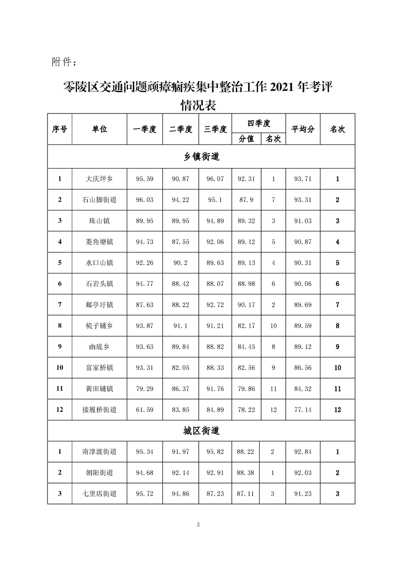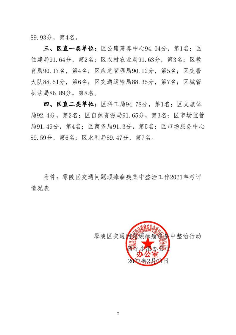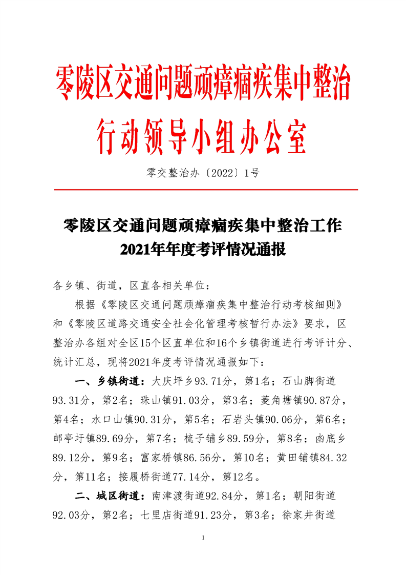 零陵区交通问题顽瘴痼疾集中整治工作2021年年度考评情况通报
