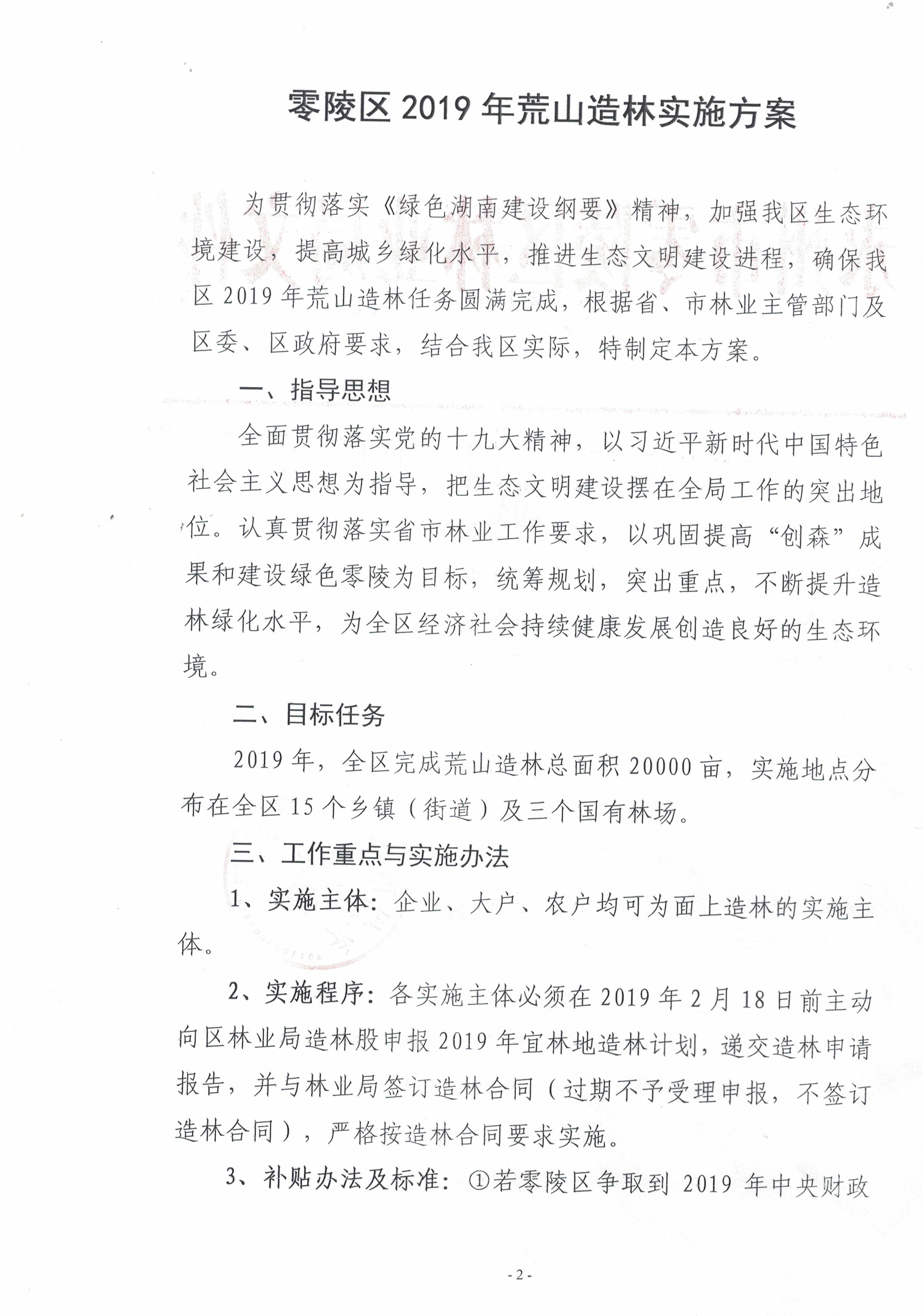 关于印发《零陵区2019年荒山造林实施方案的通知》
