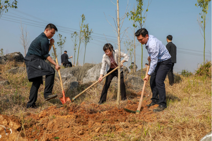据了解,在区、乡、村三级林长的带领下,当天全区共有5000余名干群参与植树活动,栽种枫香、香樟、木荷、柏木等绿化苗木2.8万多株。