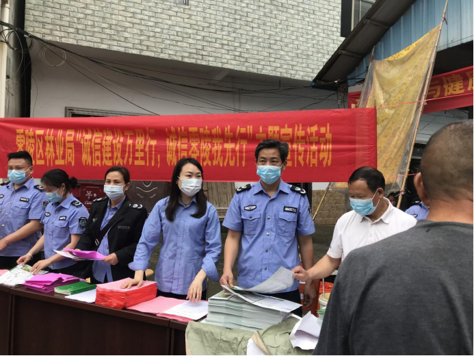 活动中,区林业局干部职工通过悬挂横幅、发放宣传资料等方式,湾夫村集市向经营户和四面八方来赶集的农民朋友们宣传诚信的重要性,并向他们普及相关林业法律知识,引导他们要文明诚信经营、文明诚信服务,要树立“诚信为荣、失信为耻”的新风尚。散集之后,区林业局干部职工下到毗邻乡镇的各村各户及油茶合作社进行“创信”宣传。