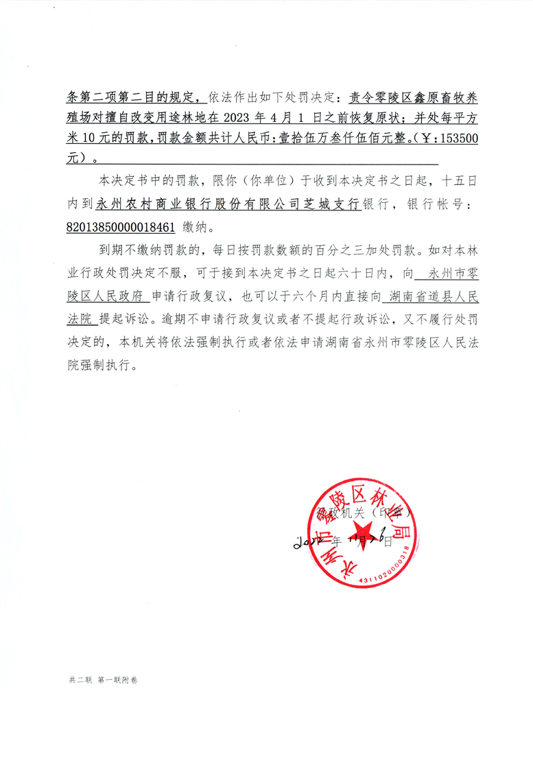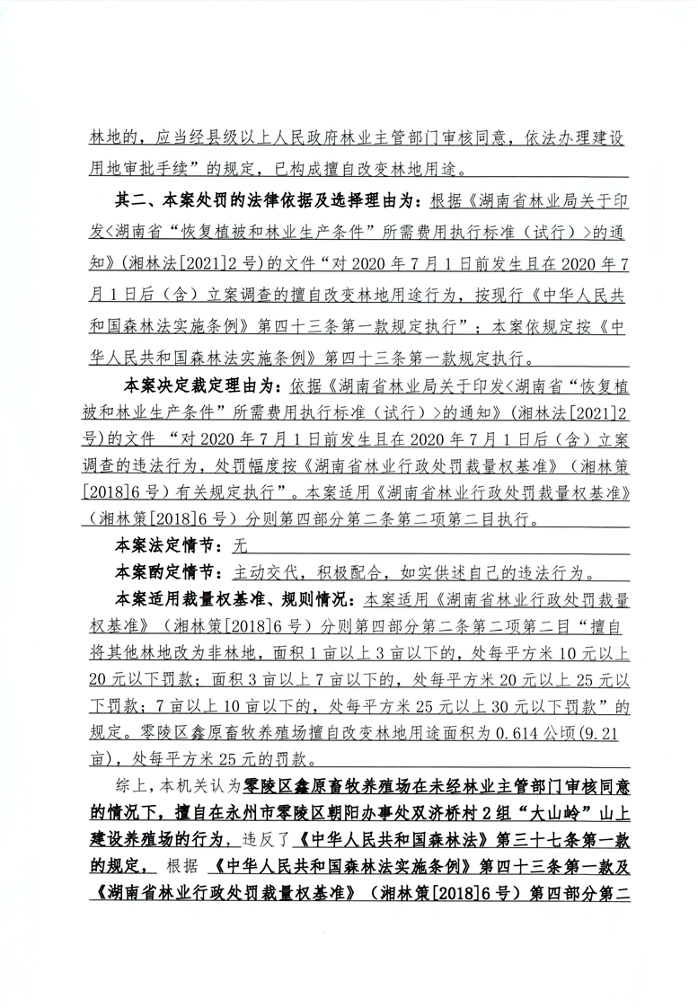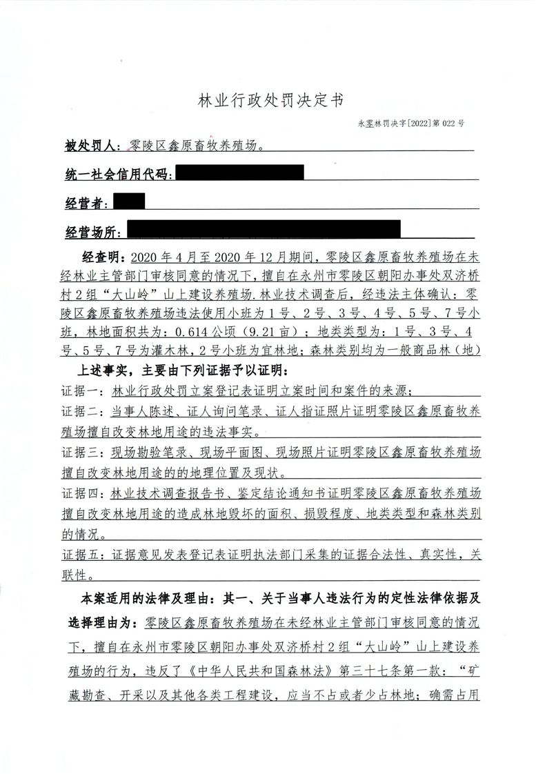 永零林罚决字[2022]第022号 零陵区鑫原畜牧养殖场擅自改变林地用途案