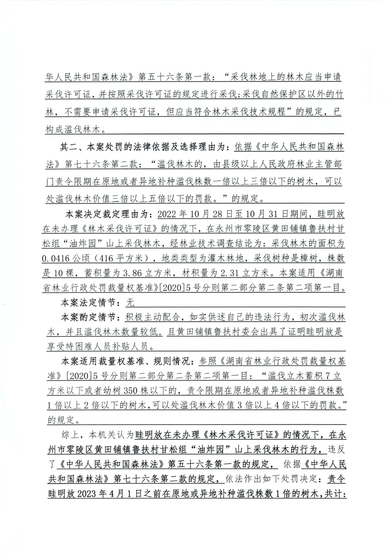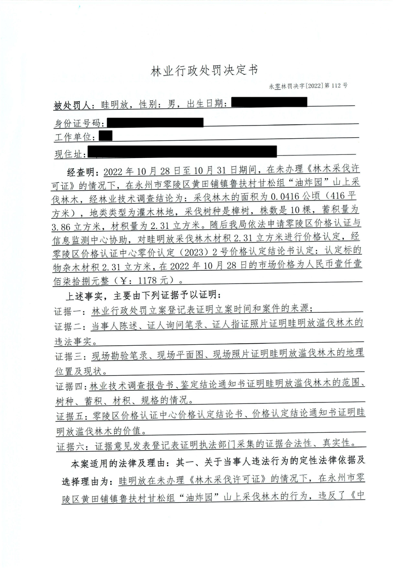 永零林罚决字[2022]第112号 眭明放滥伐林木案