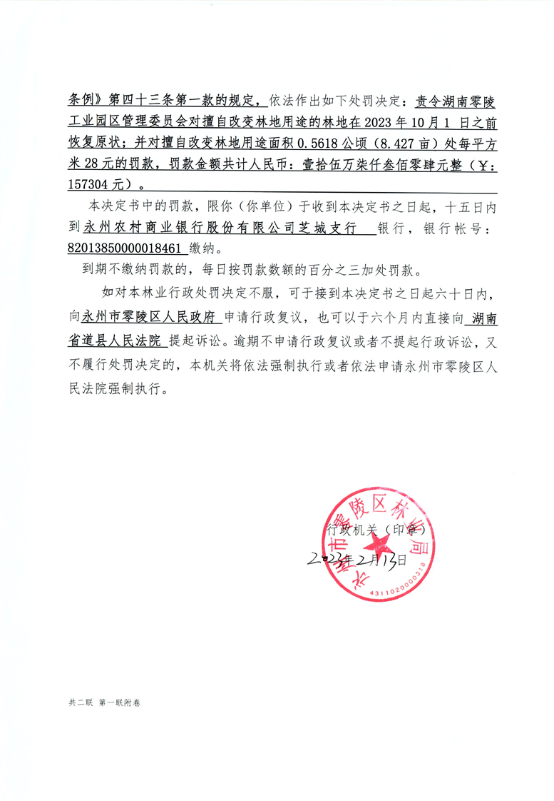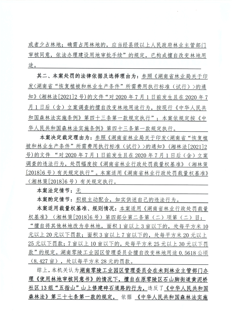 永零林罚决字[2023]第004号 湖南零陵工业园区管理委员会擅自改变林地用途案
