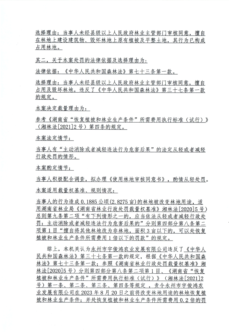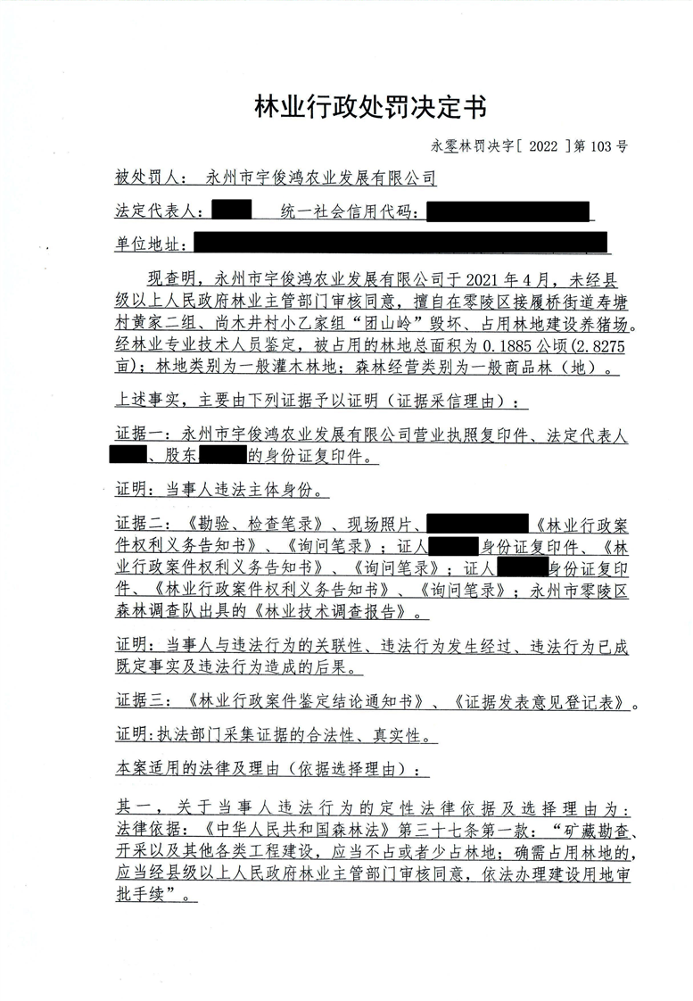 永零林罚决字[2022]第103号 永州市宇俊鸿农业发展有限公司擅自改变林地用途案