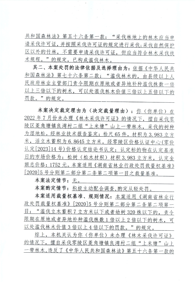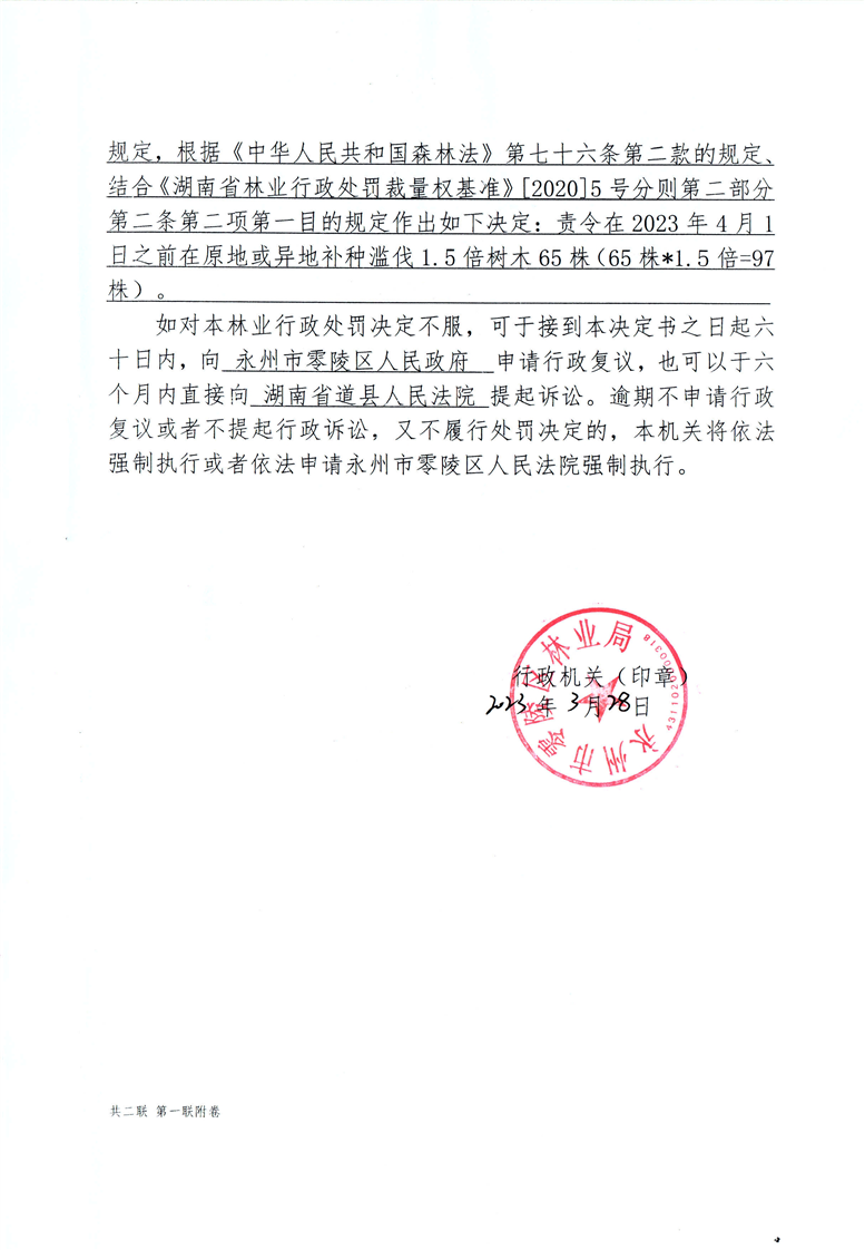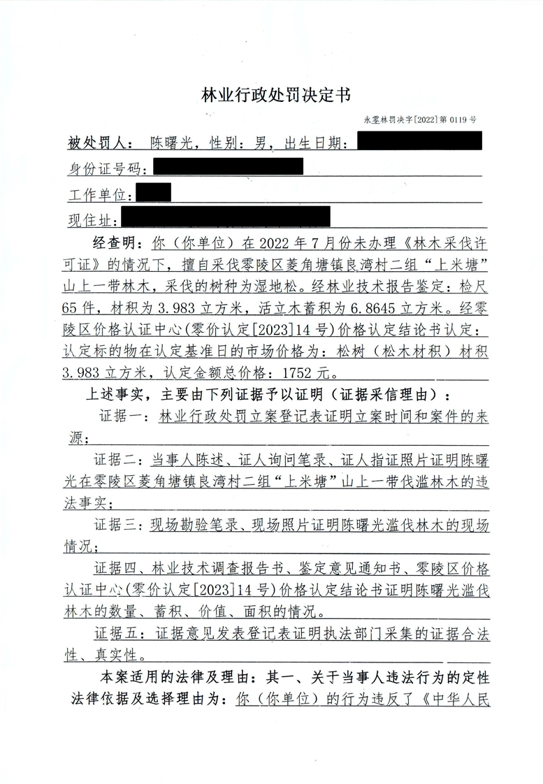 永零林罚决字[2022]第119号 陈曙光滥伐林木案