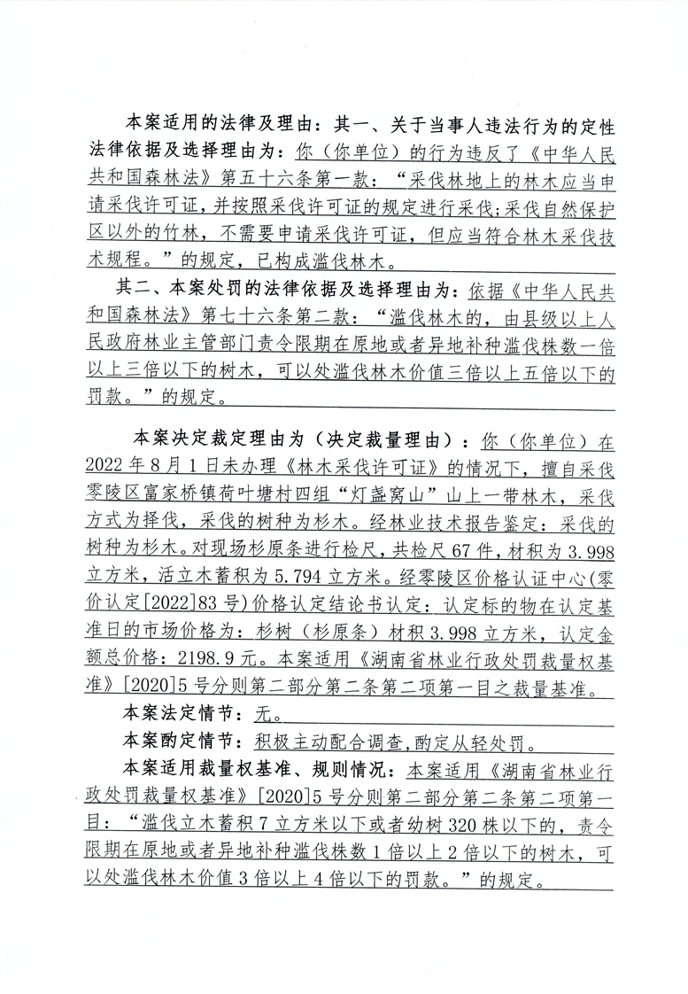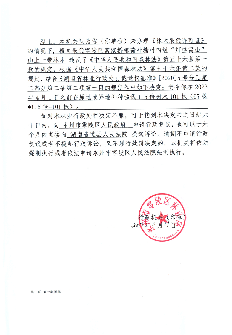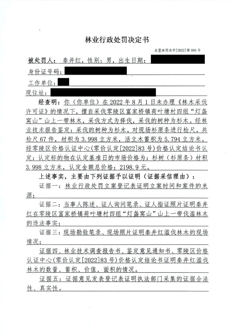 永零林罚决字[2022]第095号 秦井红滥伐林木案