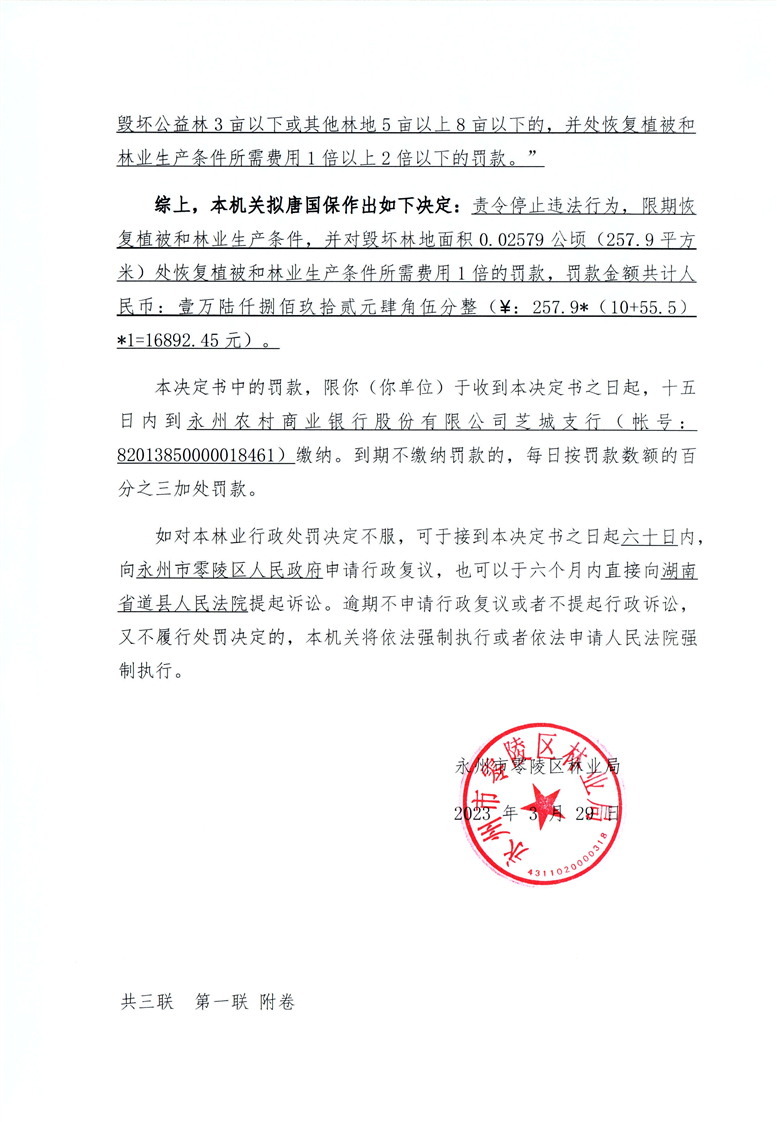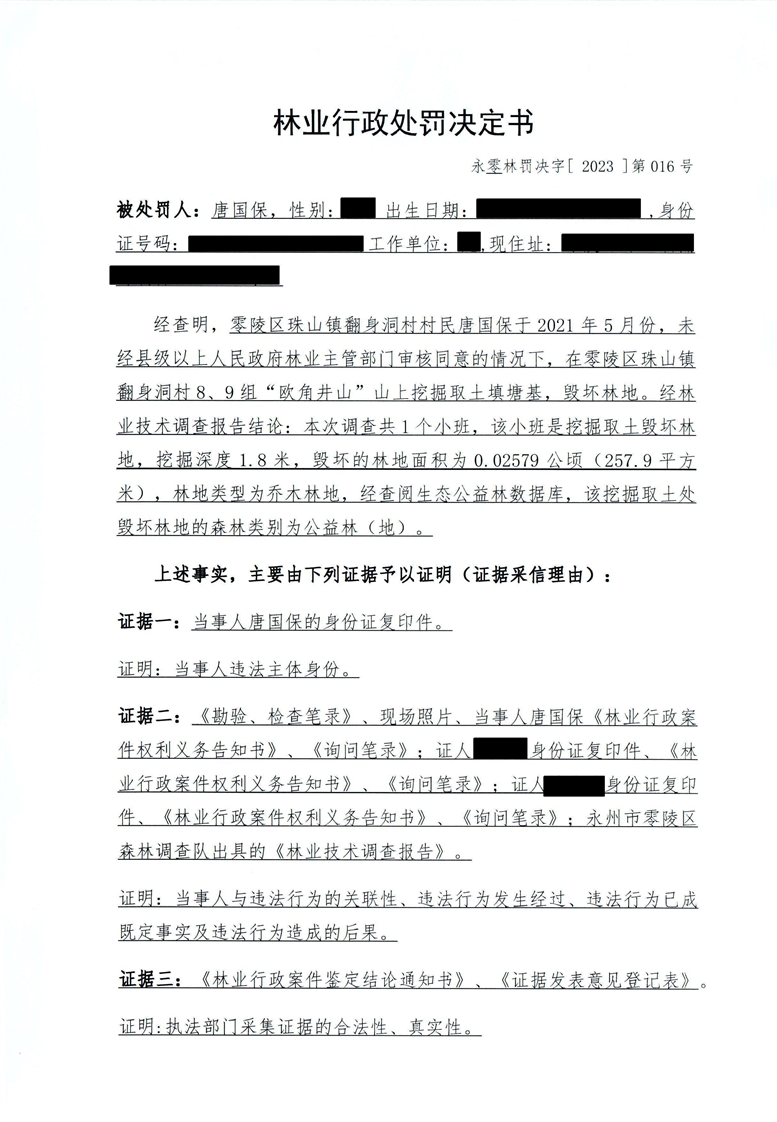 永零林罚决字[2023]第016号 唐国保非法采土造成林地毁坏案