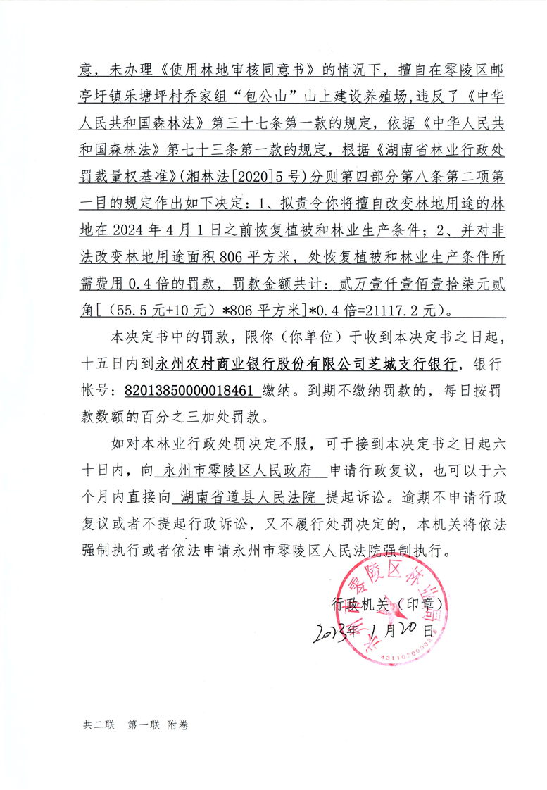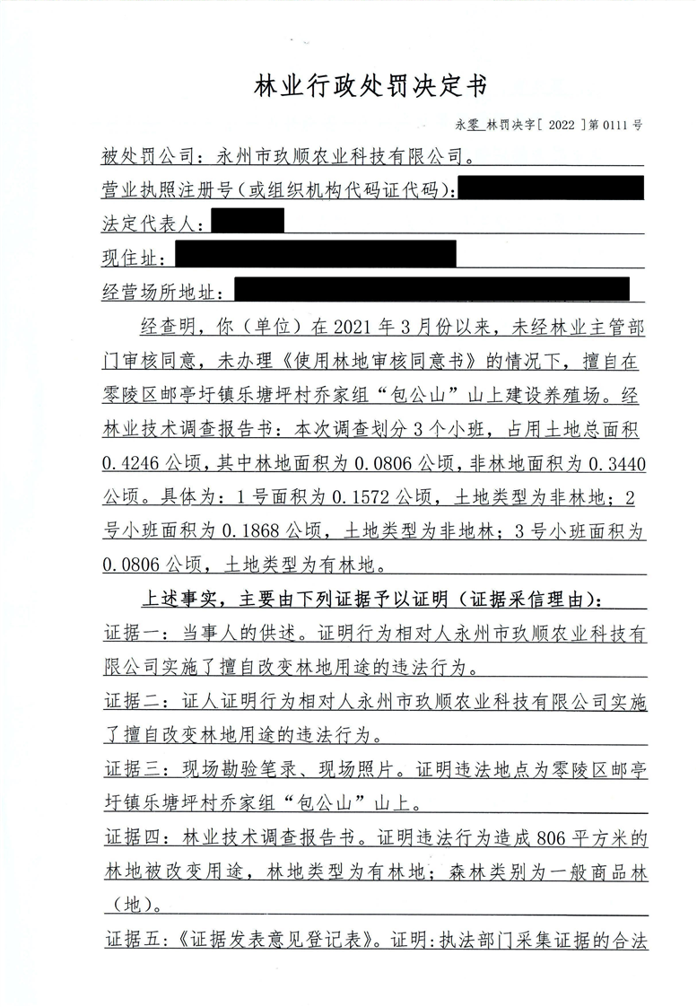 永零林罚决字[2022]第111号 永州市玖顺农业科技有限公司擅自改变林地用途案