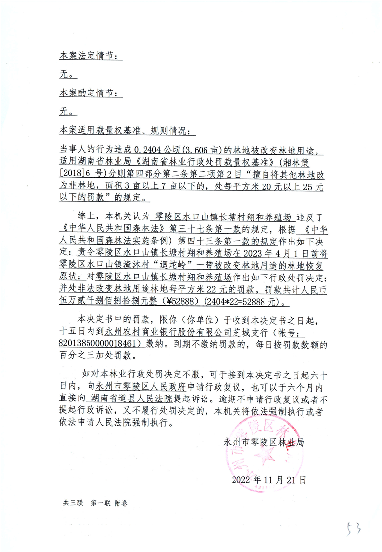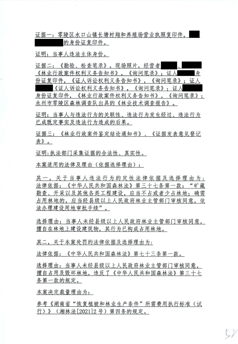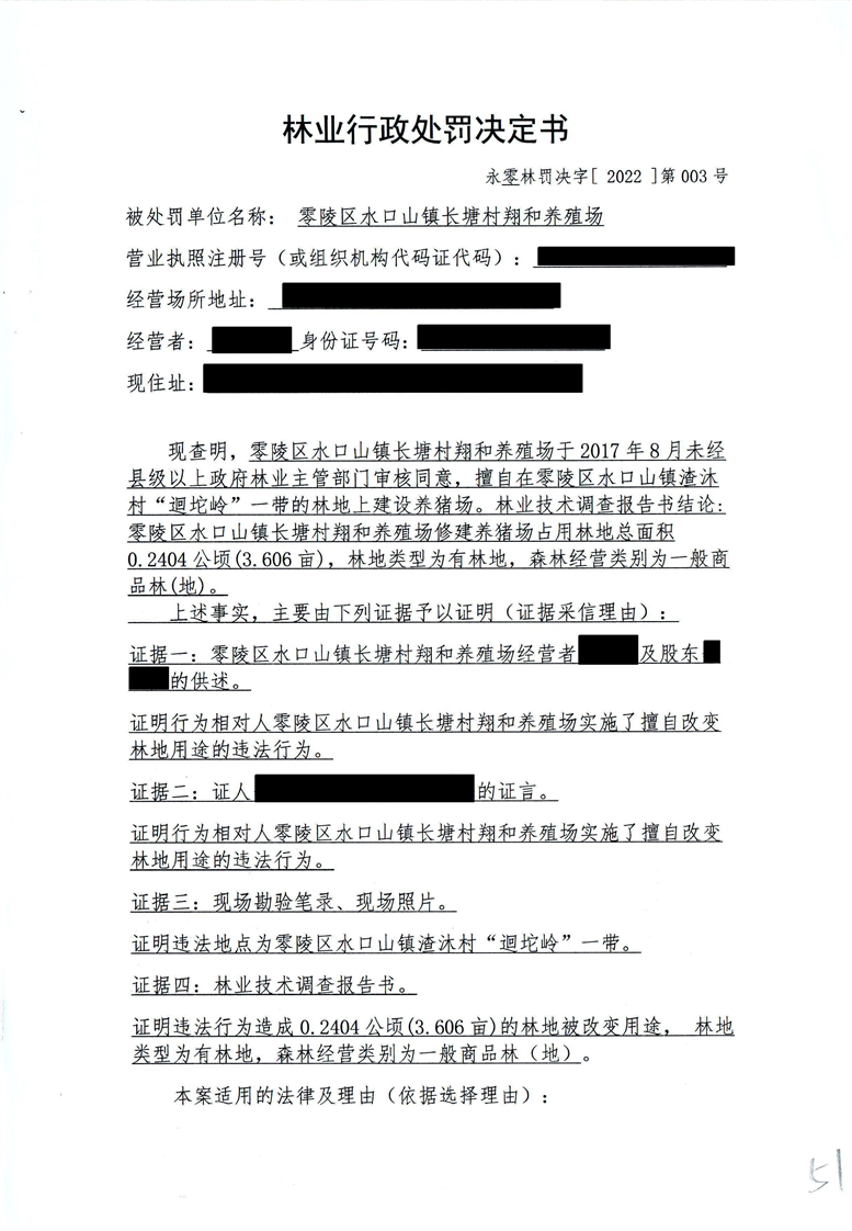 永零林罚决字[2022]第003号 零陵区水口山镇长塘村翔和养殖场擅自改变林地用途案