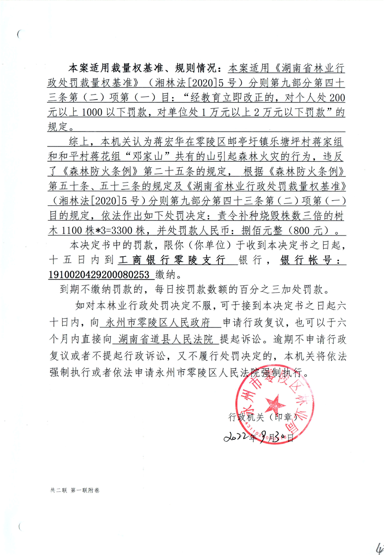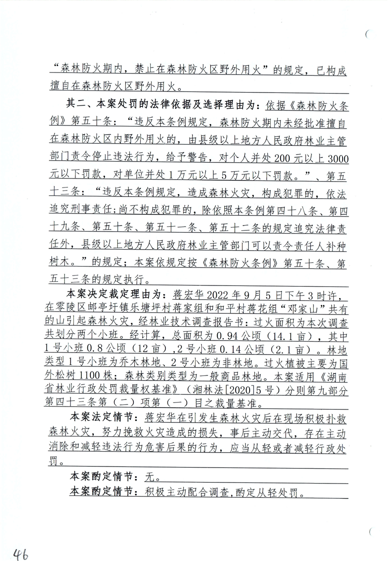永零林罚决字[2022]第097号 蒋宏华擅自在森林防火区野外用火案