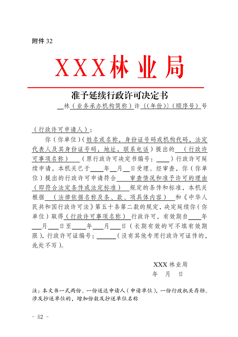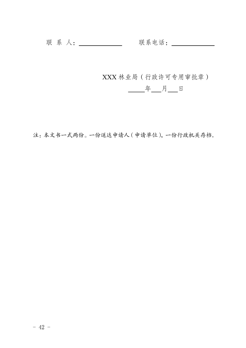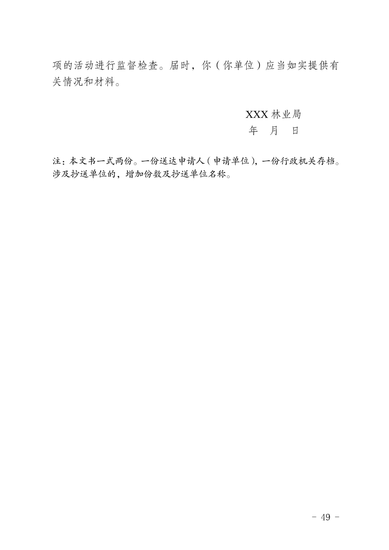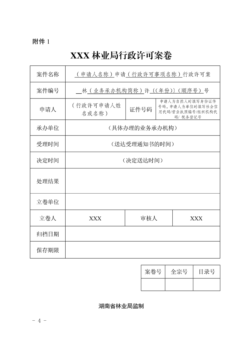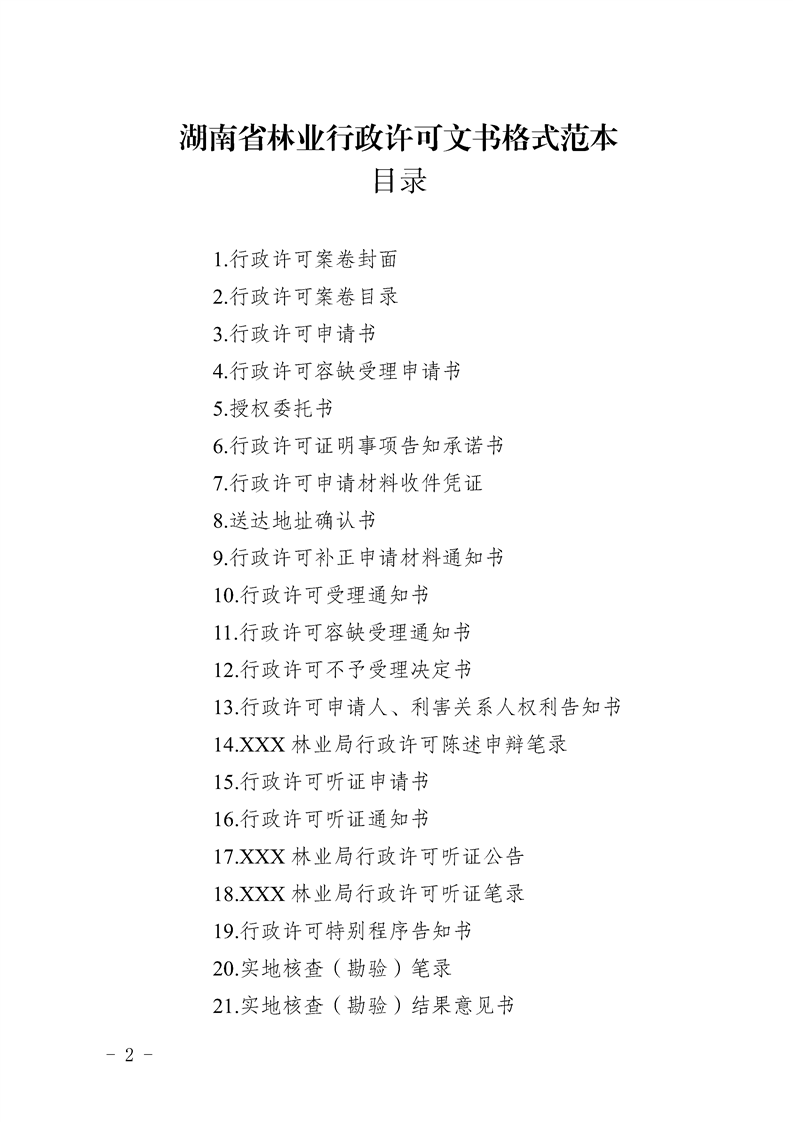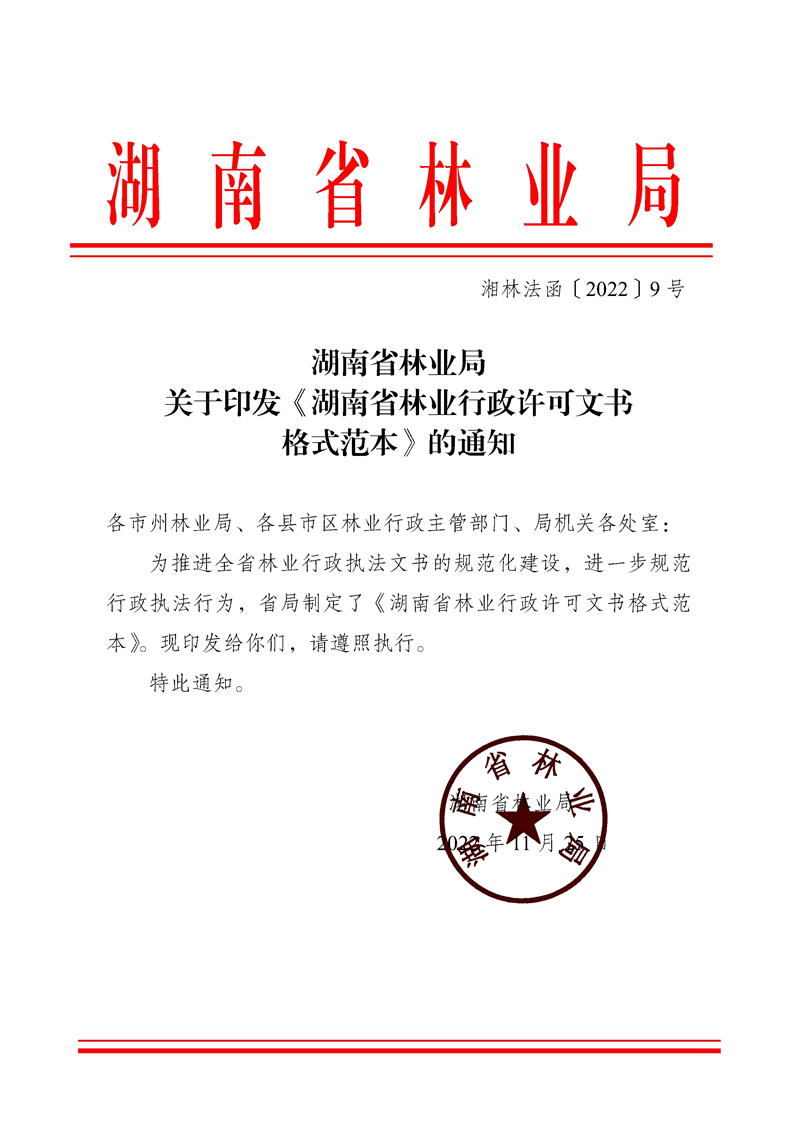 湖南省林业局关于印发《湖南省林业行政许可文书格式范本》的通知
