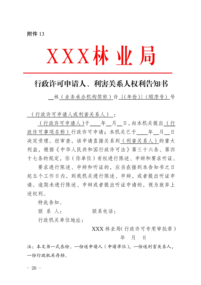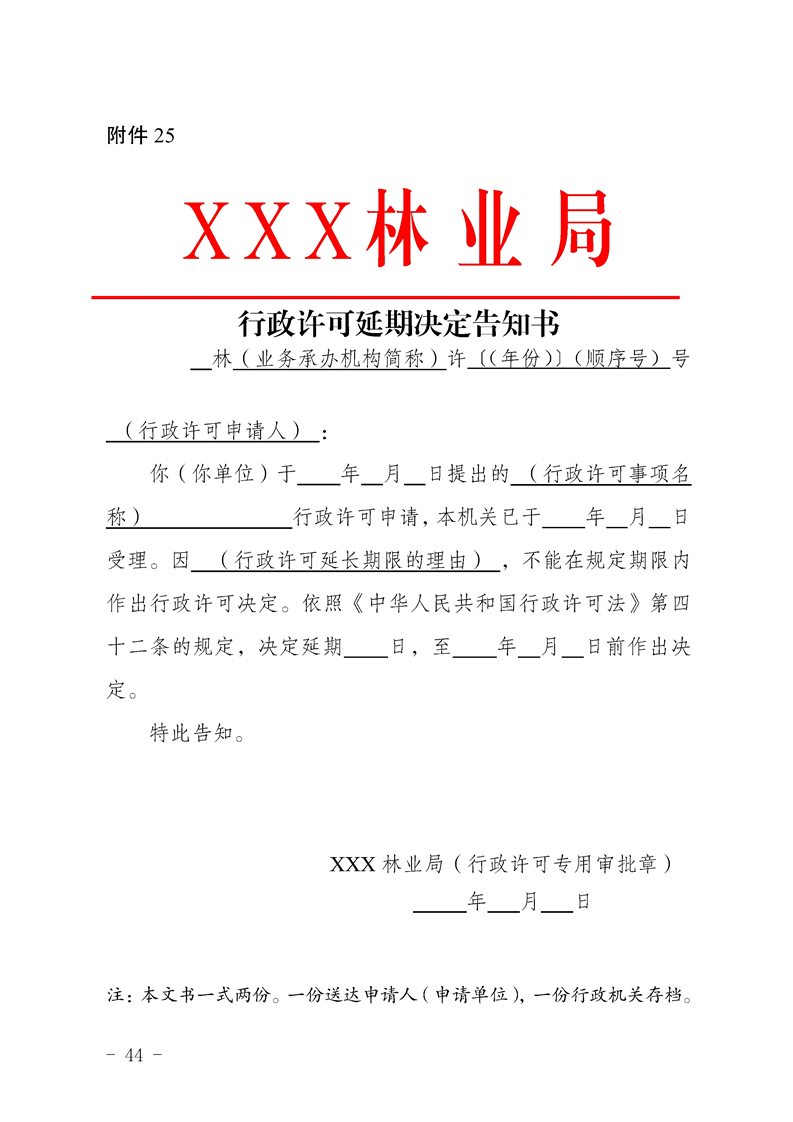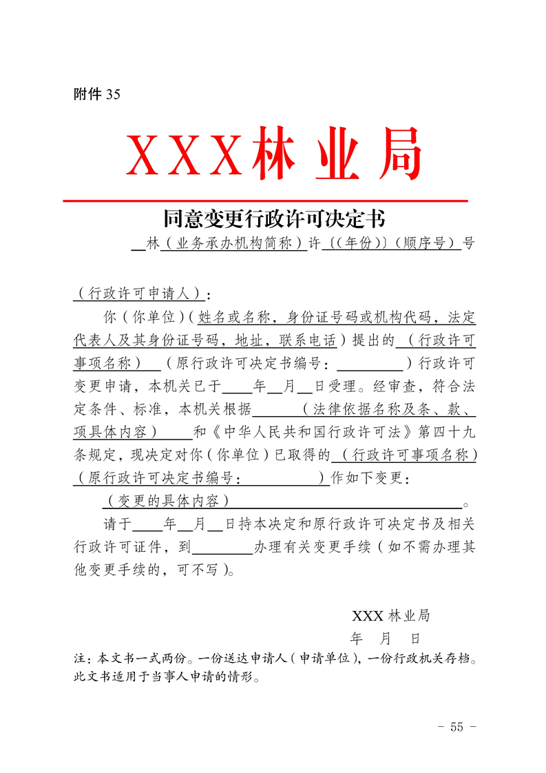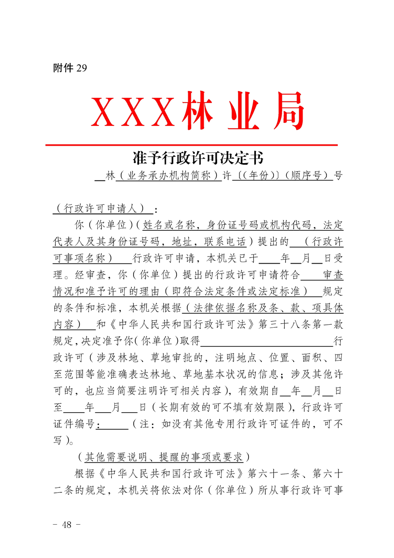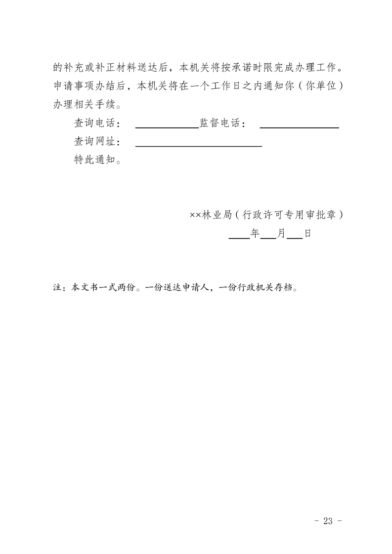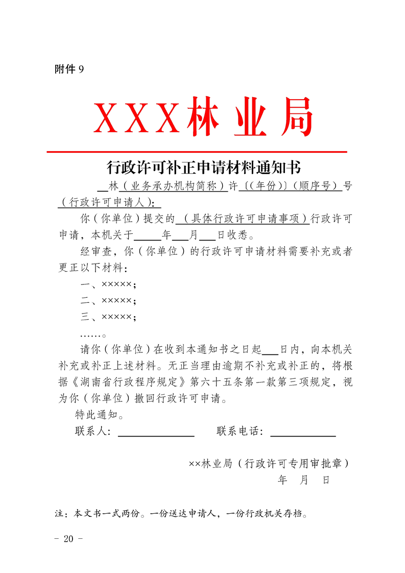 湖南省林业局关于印发《湖南省林业行政许可文书格式范本》的通知